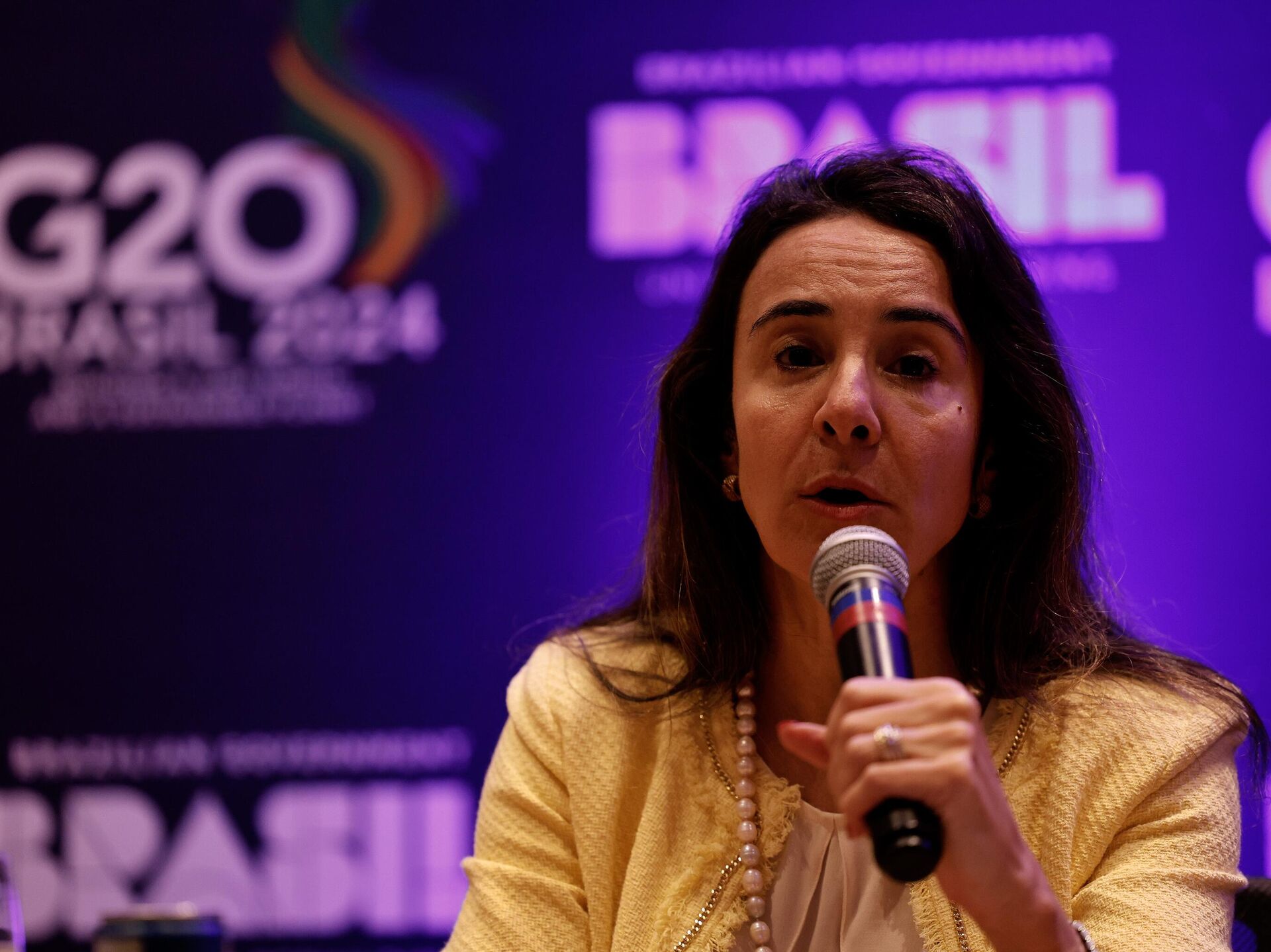© Foto / Tânia Rêgo/Agência BrasilA secretária de Assuntos Internacionais do Ministério da Fazenda, embaixadora Tatiana Rosito durante coletiva de balanço da quarta reunião da Força-Tarefa para uma Mobilização Global contra a Mudança do Clima, 13 de setembro de 2024