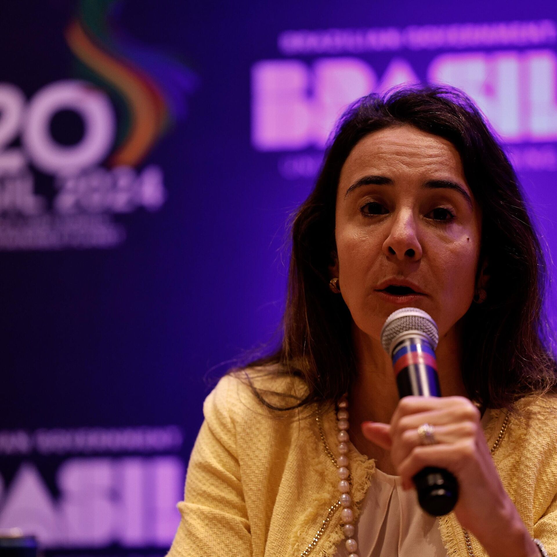A secretária de Assuntos Internacionais do Ministério da Fazenda, embaixadora Tatiana Rosito durante coletiva de balanço da quarta reunião da Força-Tarefa para uma Mobilização Global contra a Mudança do Clima, 13 de setembro de 2024 - Sputnik Brasil, 1920, 01.04.2025