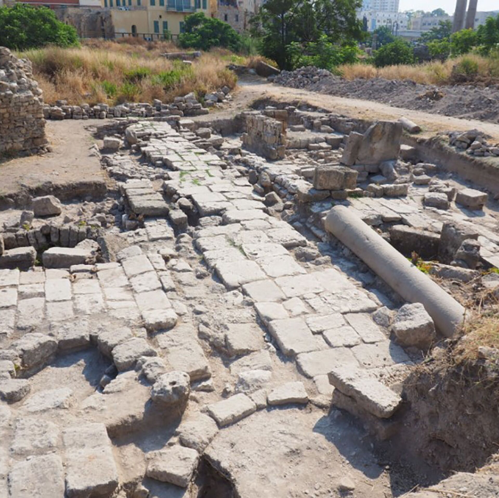 A equipe descobriu uma estrada romana de aproximadamente 4 metros de largura com pórticos e edifícios em cada lado. Os pesquisadores conseguiram escavar as adegas de dois dos edifícios que ladeiam a estrada. Nos pátios traseiros das casas, existiam