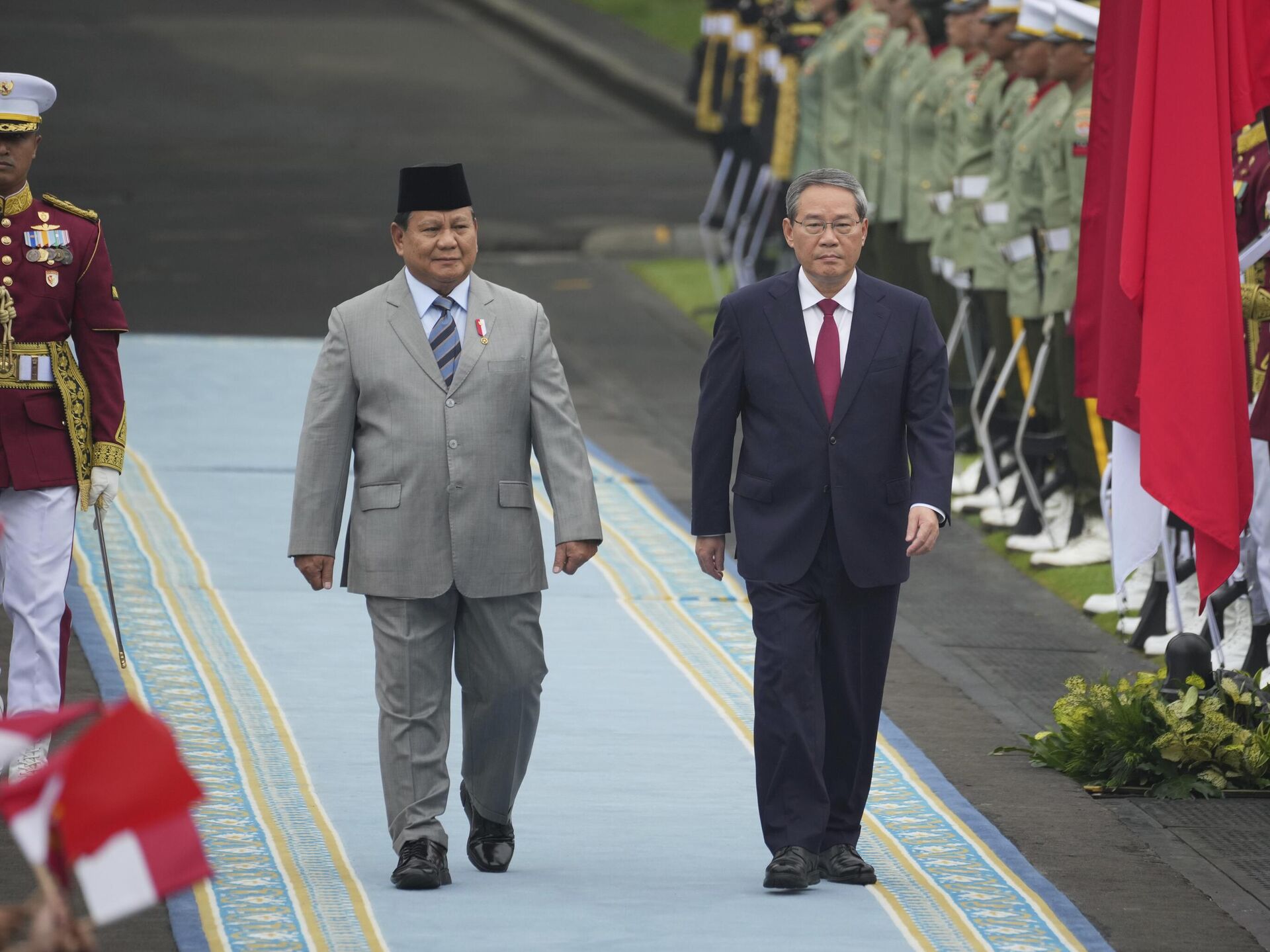 No sábado, logo após a chegada do premiê à Indonésia, Li e Prabowo visitaram juntos uma exposição comemorativa do 70º aniversário da Conferência de Bandung.
