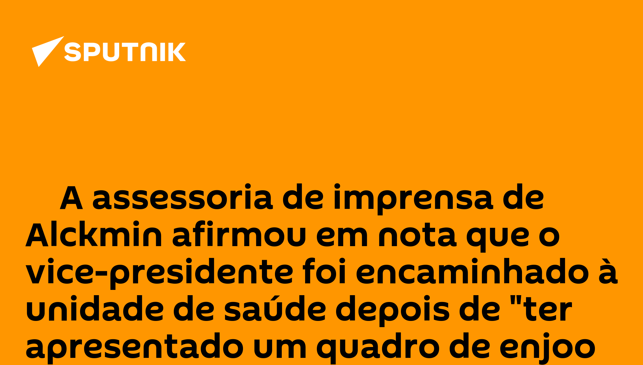 ‼ A assessoria de imprensa de Alckmin afirmou em nota que o vice-presidente foi encaminhado à unidade de saúde depois de "ter apresentado um quadro de enjoo e de dores abdominais"."O vice-presidente da República e ministro, Geraldo Alckmin, passou por consulta médica, na manhã de hoje, no hospital Sírio-Libanês, em Brasília, após ter apresentado um quadro de enjoo e de dores abdominais", diz a nota.Ainda conforme a nota, "o vice-presidente realizou exames preliminares que sugerem uma inflamação intestinal, os quais serão complementados à tarde, pela equipe médica que o está assistindo".Siga a @sputnikbrasil no Telegram
