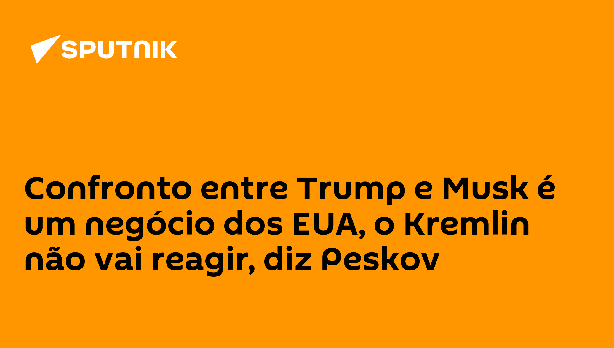07:48 06.06.2025 (atualizado: 09:04 06.06.2025) O porta-voz da presidência russa, Dmitry Peskov, chamou a polêmica entre o presidente Donald Trump e o empresário Elon Musk de um assunto interno dos EUA.