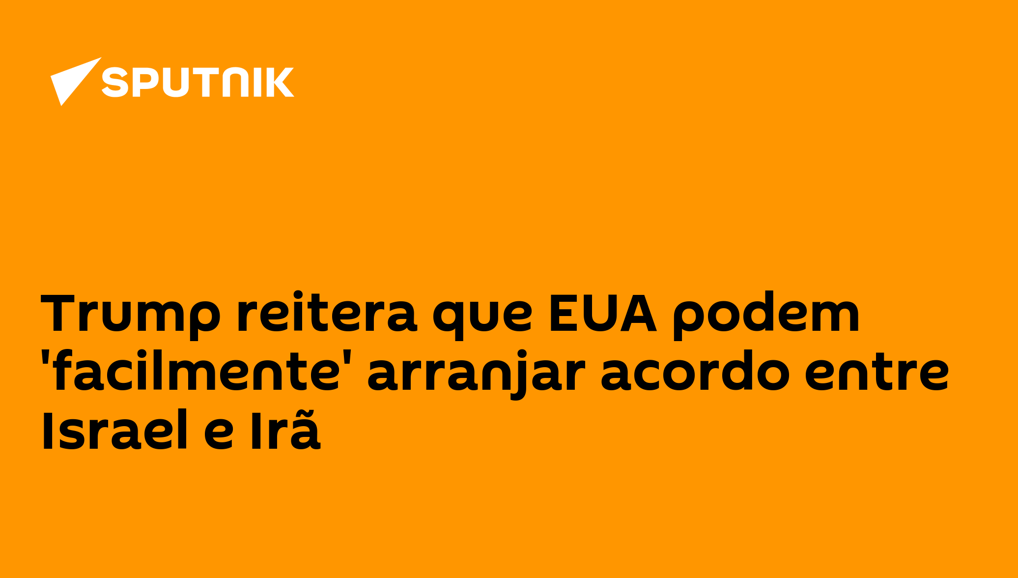 Trump reitera que EUA podem 'facilmente' arranjar acordo entre Israel e Irã Além disso, o presidente dos EUA negou a participação de seu país dos ataques israelenses contra o Irã e ameaçou responder com "toda força e poder" das suas Forças Armadas a qualquer ataque iraniano.Siga a @sputnikbrasil no Telegram