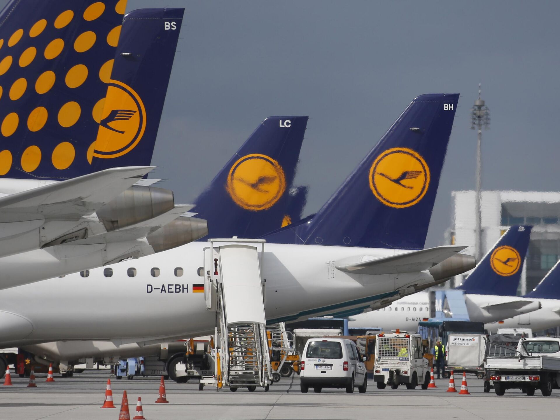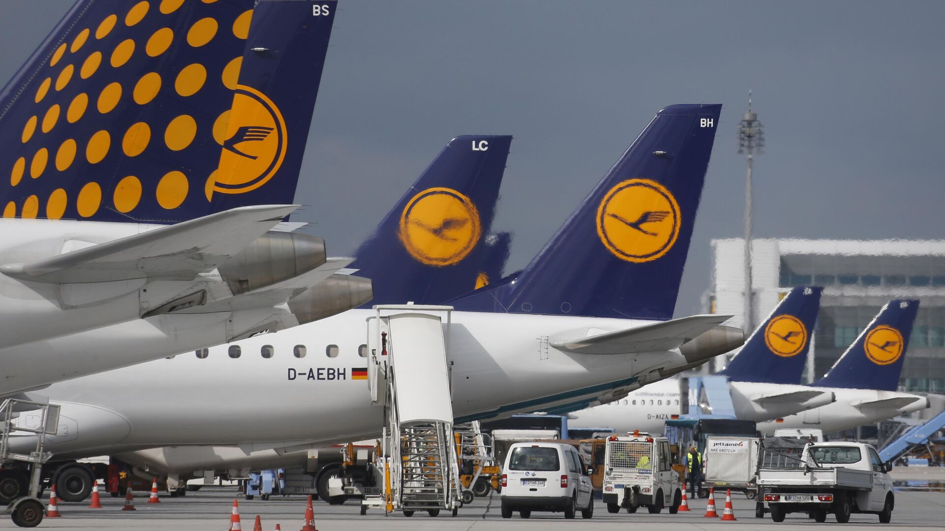 Aviões da Lufthansa estacionados no aeroporto internacional de Munique, no sul da Alemanha. A companhia aérea alemã Lufthansa está encomendando 34 novos aeronaves da Boeing e 25 da rival europeia Airbus, para atualizar sua frota de longa distância e torná-la mais eficiente em termos de combustível e custos mais baixos, 26 de agosto de 2013 - Sputnik Brasil, 1920, 22.06.2025