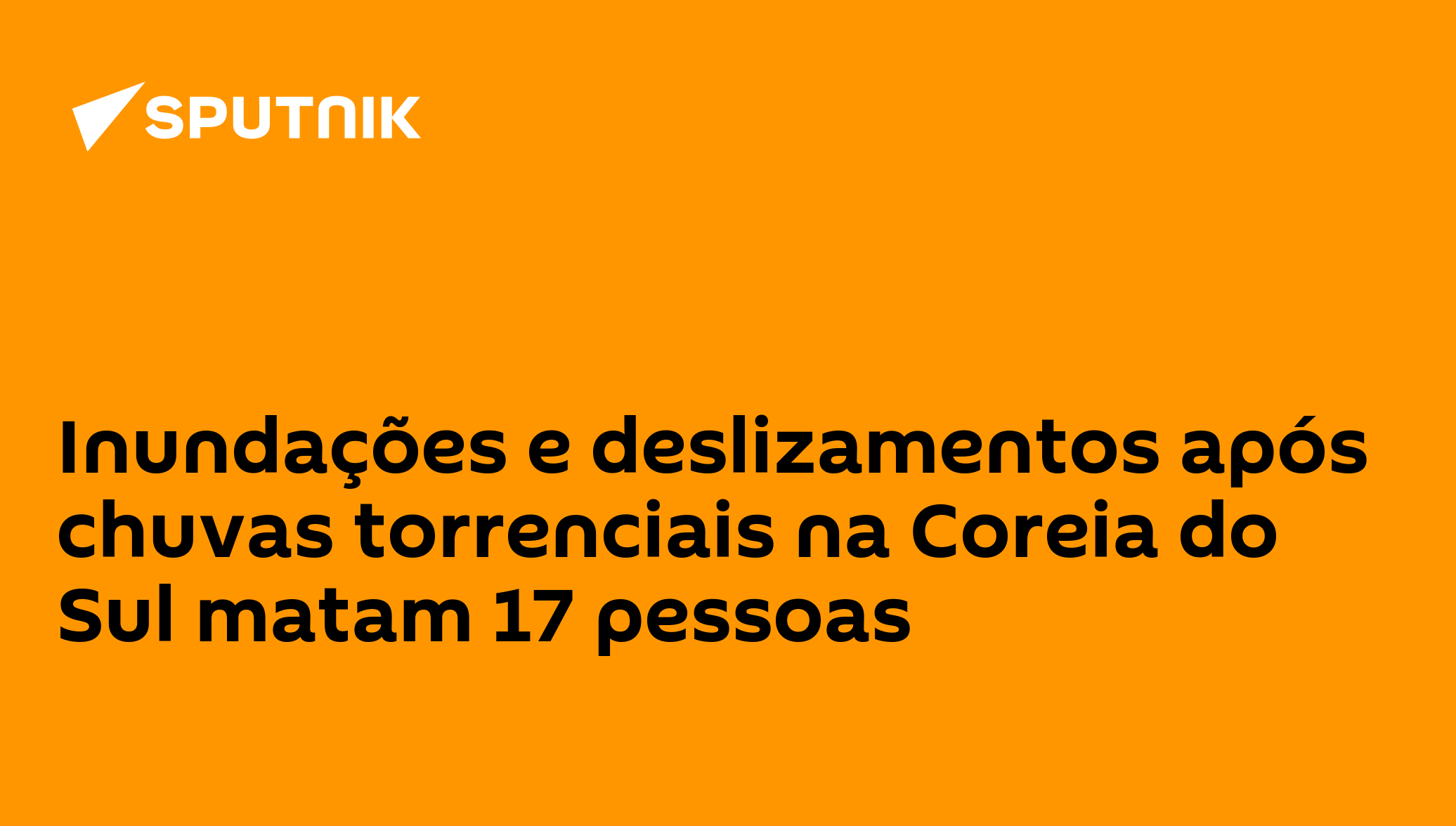 Inundações e deslizamentos após chuvas torrenciais na Coreia do Sul matam 17 pessoas Desde a quarta-feira (16), o desastre deixou 17 mortos e 11 desaparecidos e levou à evacuação de mais de 13 mil pessoas das áreas afetadas, segundo as autoridades locais.Siga a @sputnikbrasil no Telegram