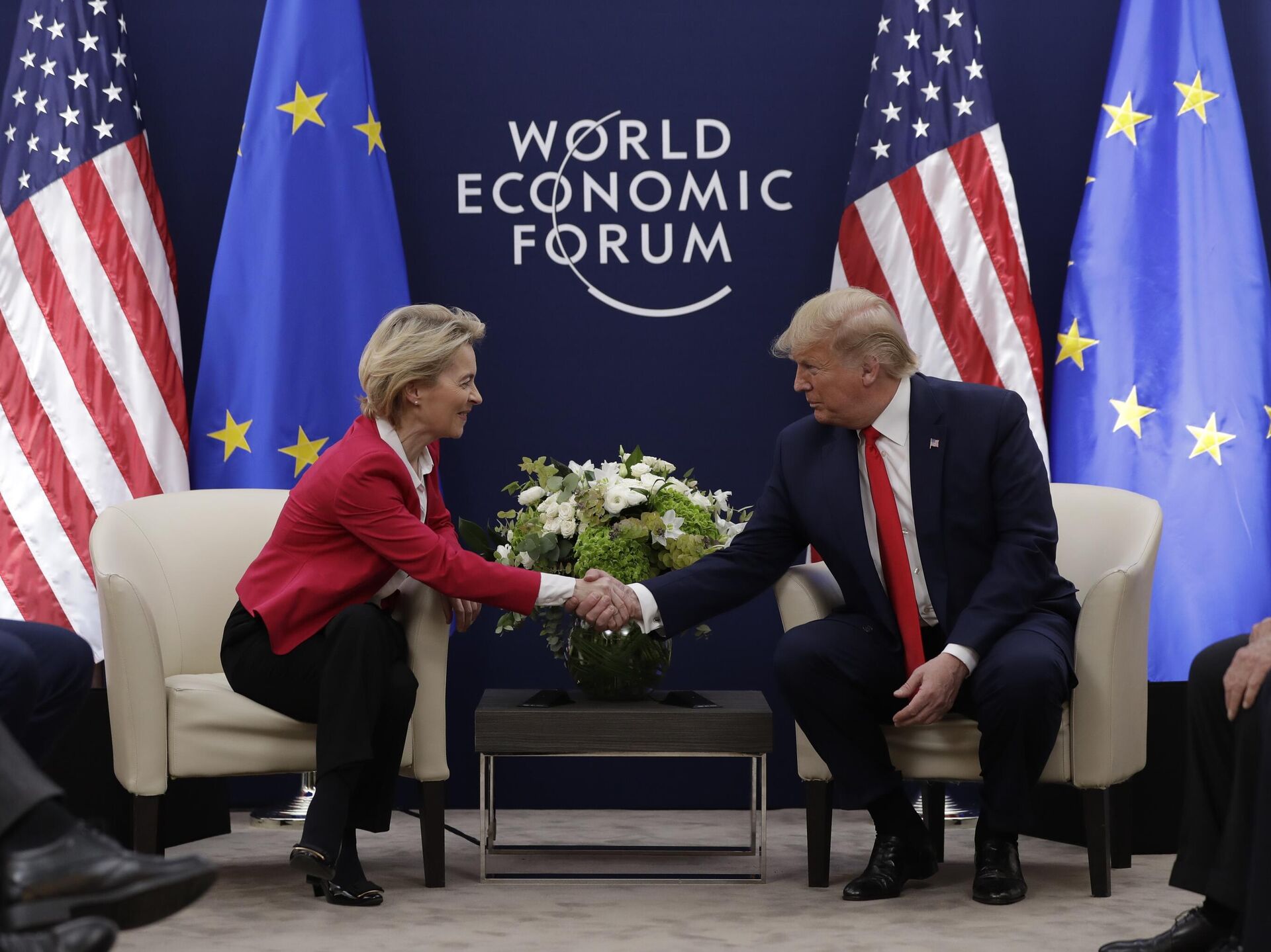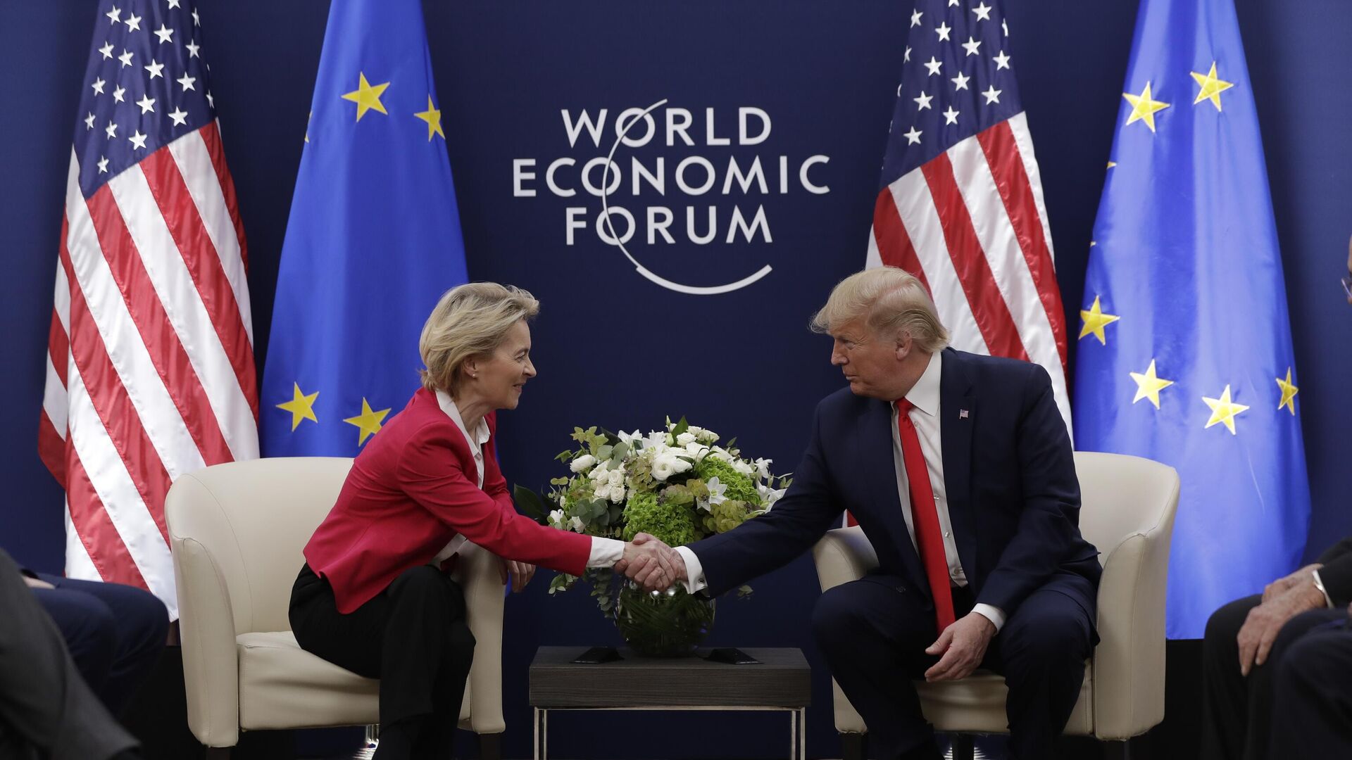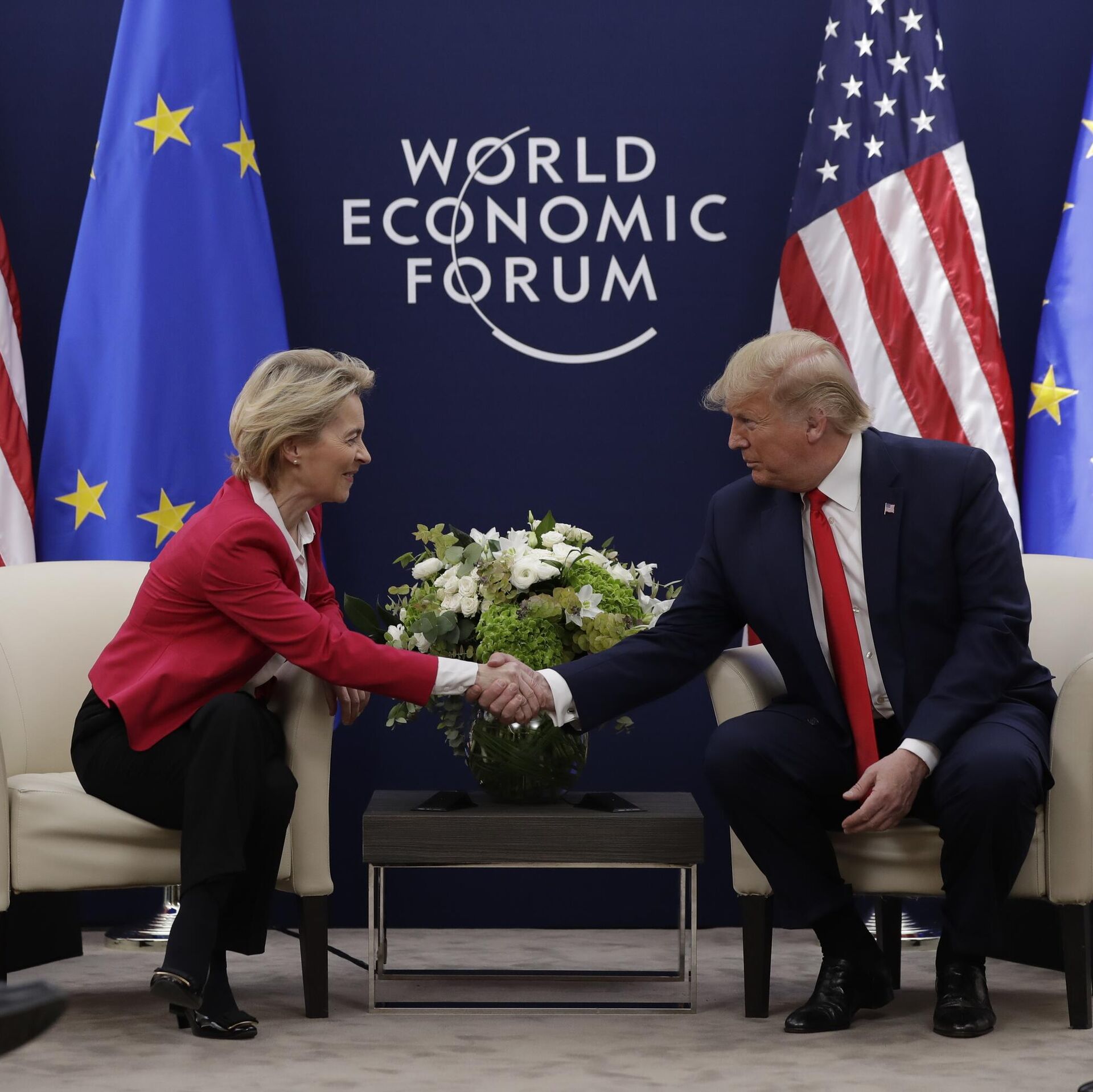 Presidente dos Estados Unidos, Donald Trump (à esq.), em encontro com a presidente da Comissão Europeia, Usula von Der Leyen, no Fórum Econômico Mundial, em Davos, na Suíça, em 21 de janeiro de 2020 - Sputnik Brasil, 1920, 28.07.2025