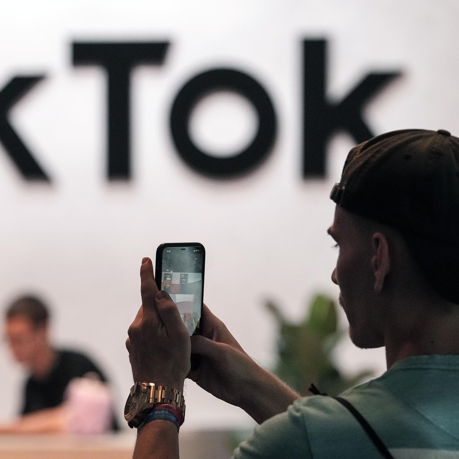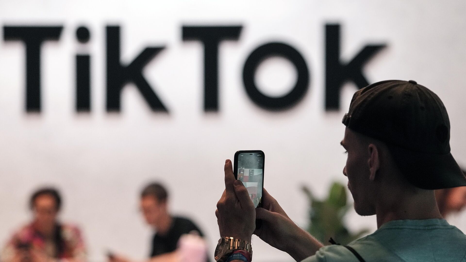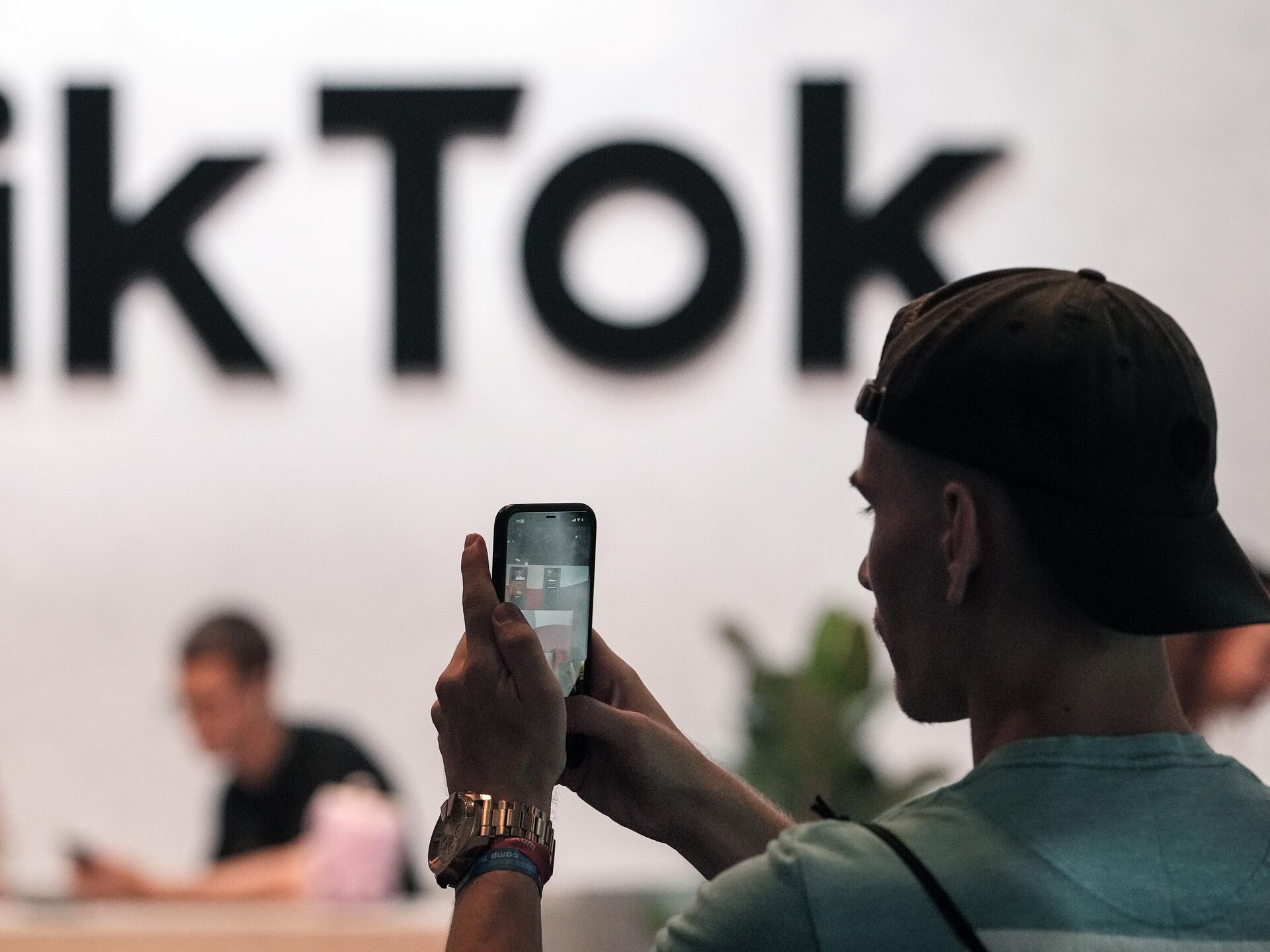 © AP Photo / Martin MeissnerUm visitante tira uma foto nos estandes do TikTok na feira de jogos eletrônicos Gamescom, em Colônia, Alemanha, em agosto de 2022