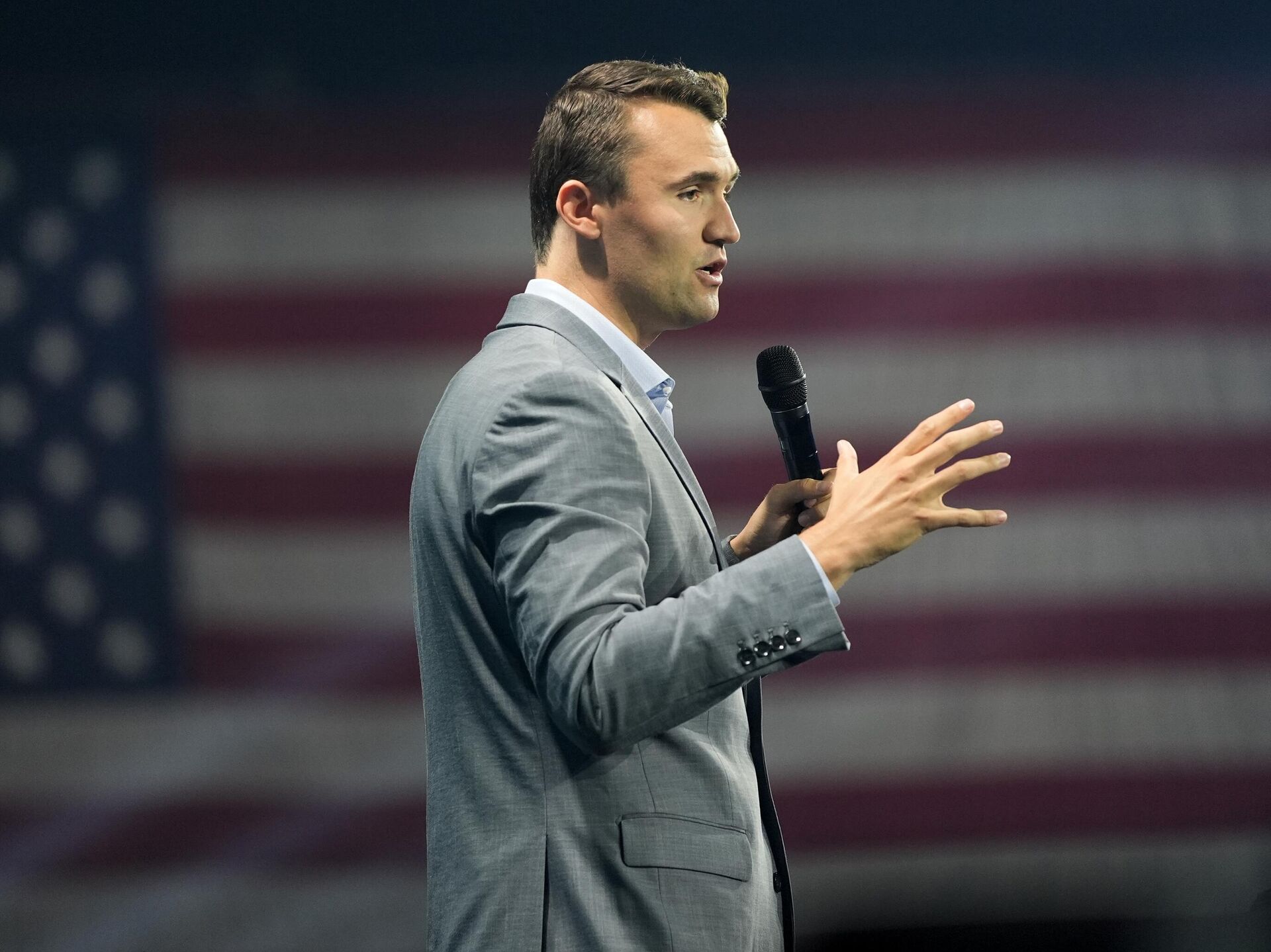 © AP Photo / Alex BrandonO ativista Charlie Kirk durante discurso em comício político nos Estados Unidos, em julho de 2024
