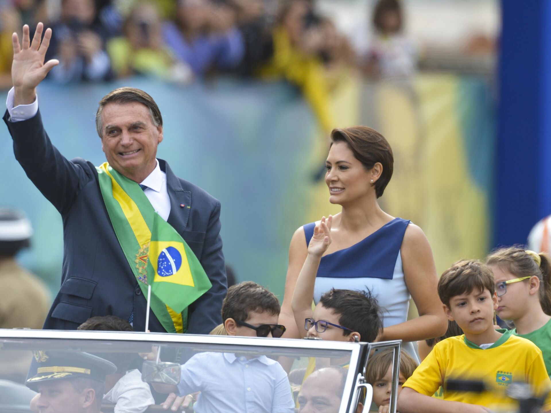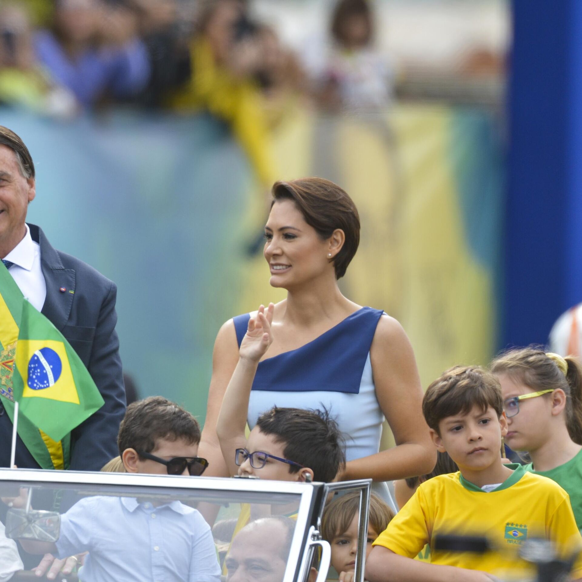 Jair Bolsonaro, então presidente do Brasil, e Michelle Bolsonaro, então primeira-dama, durante desfile cívico-militar do 7 de Setembro em 2022, em Brasília (DF) - Sputnik Brasil, 1920, 24.09.2025