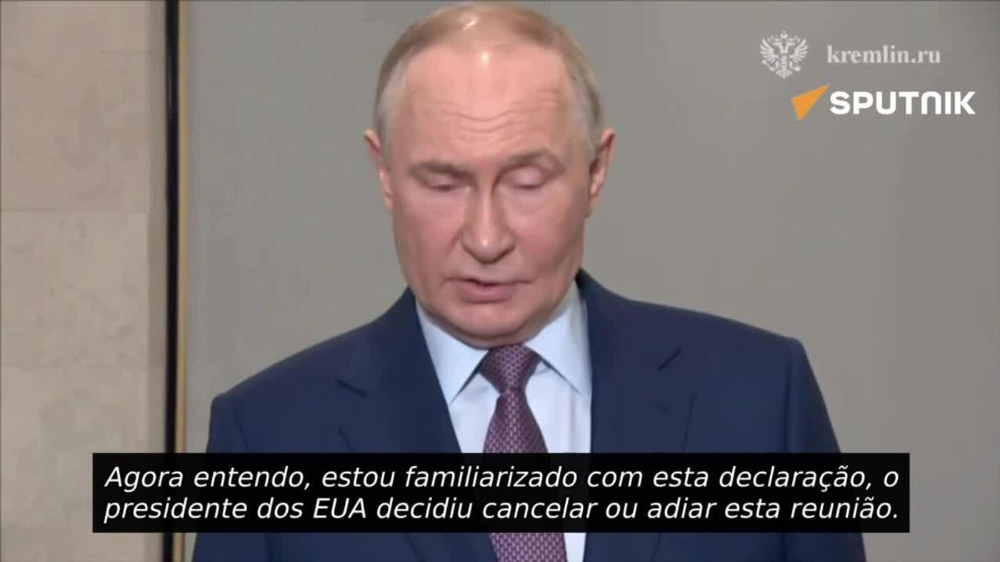 É mais provável que se trate apenas de um adiamento do encontro, afirmou nesta quinta-feira (23) o presidente da Rússia, Vladimir Putin, ao comentar as declarações de seu homólogo americano, Donald Trump, sobre a cúpula que seria realizada na Hungria. A fala ocorreu após sua participação no XVII Congresso da Sociedade Geográfica Russa, em Moscou.