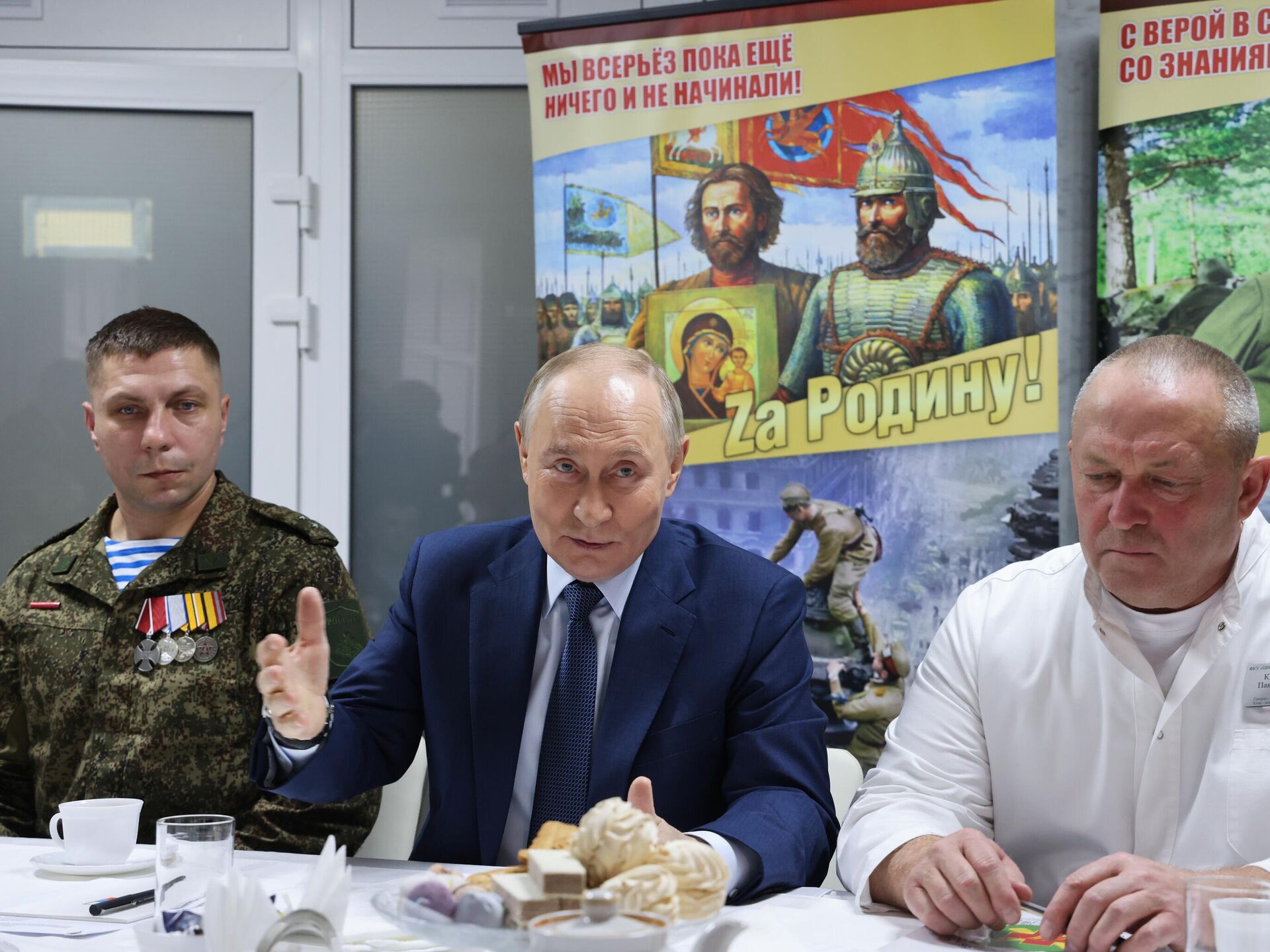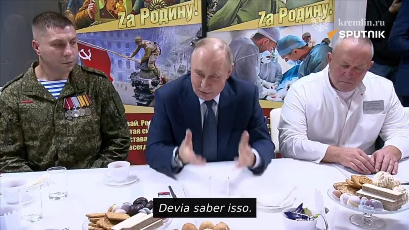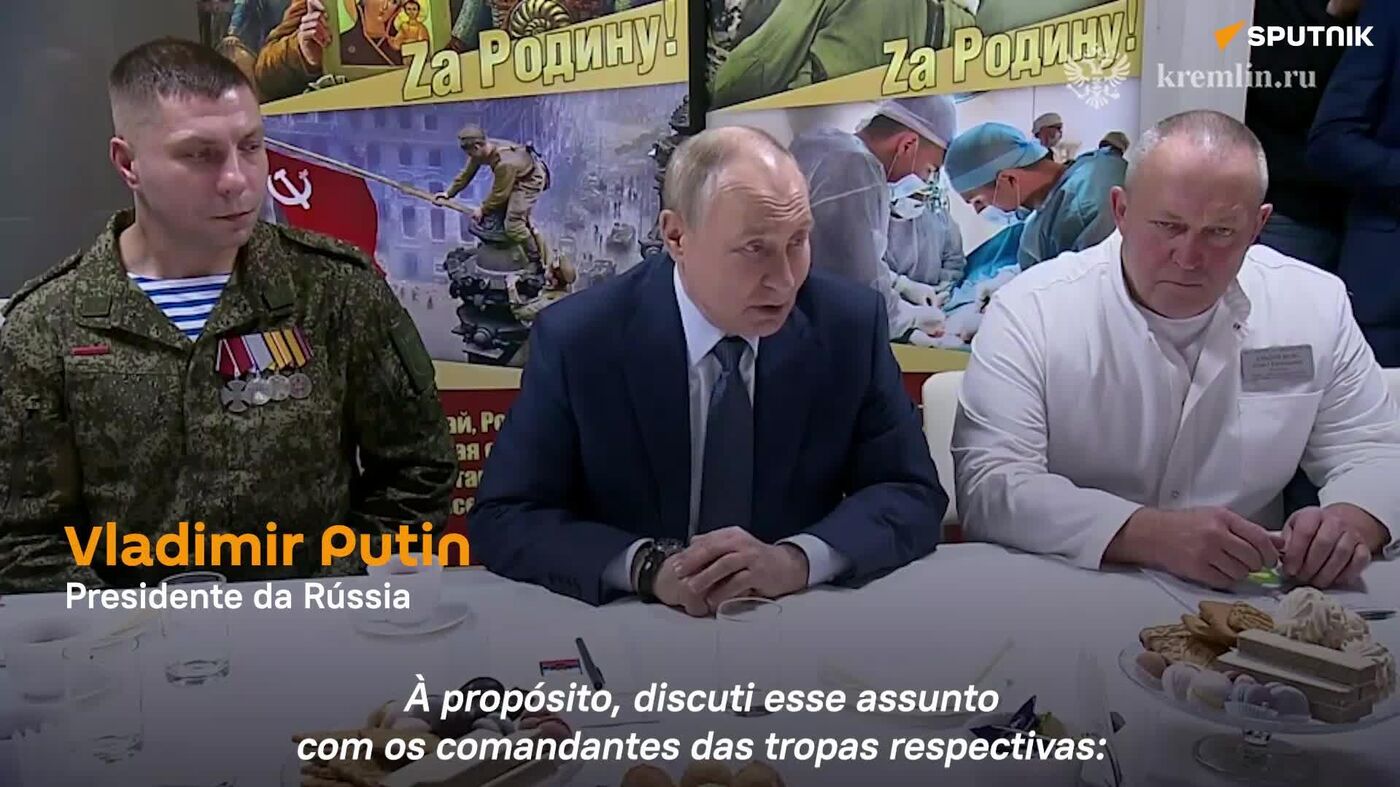 Vladimir Putin foi acompanhado pelo ministro da Defesa, Andrei Belousov, durante a visita ao hospital militar. O chefe de Estado agradeceu aos soldados russos pelos ícones com marcas de balas que lhe foram oferecidos no seu aniversário e pelo serviço prestado à pátria.