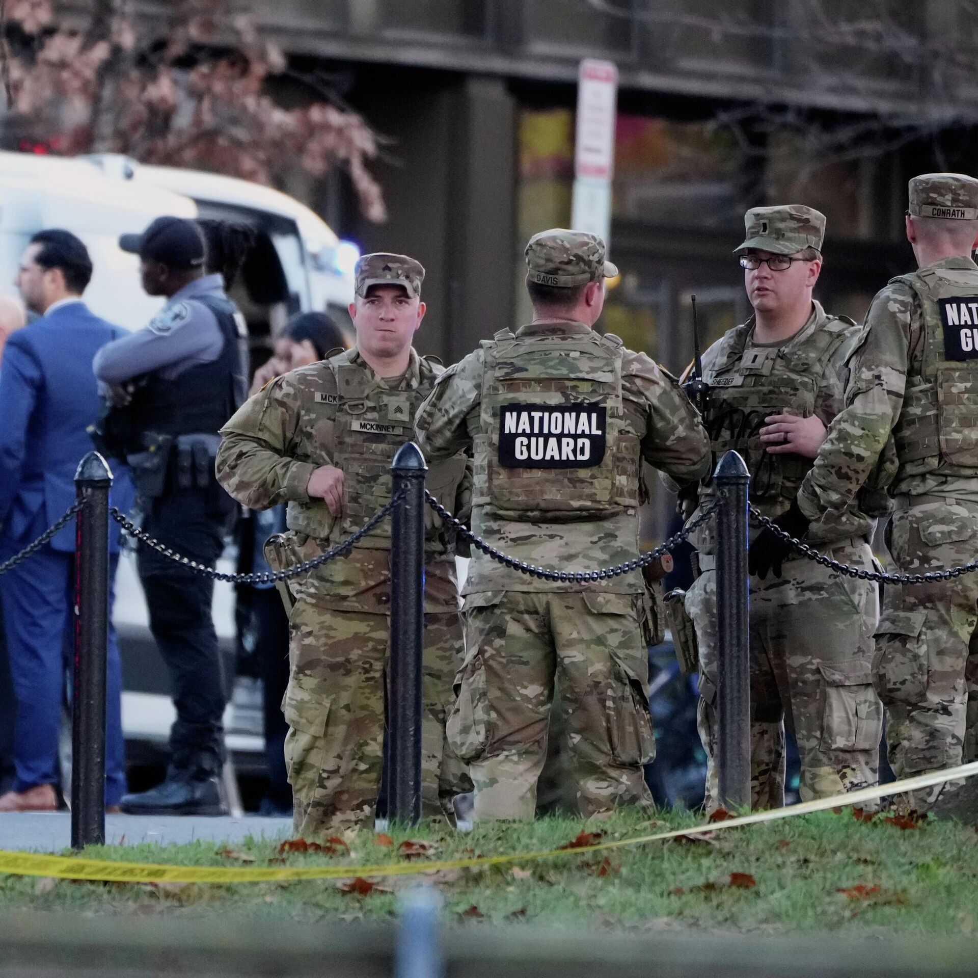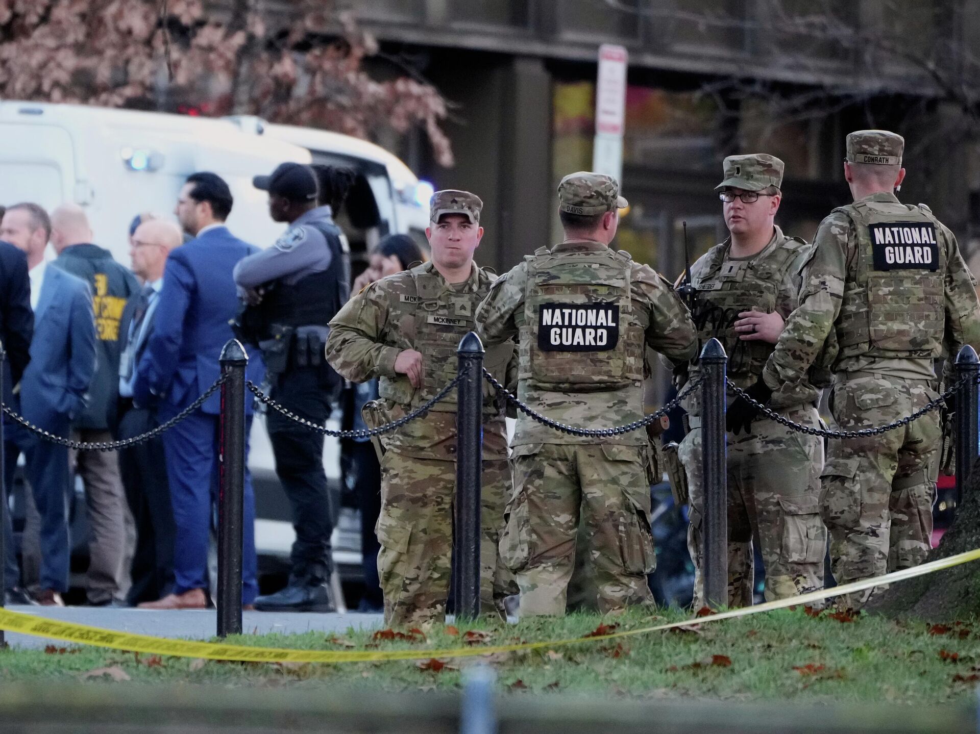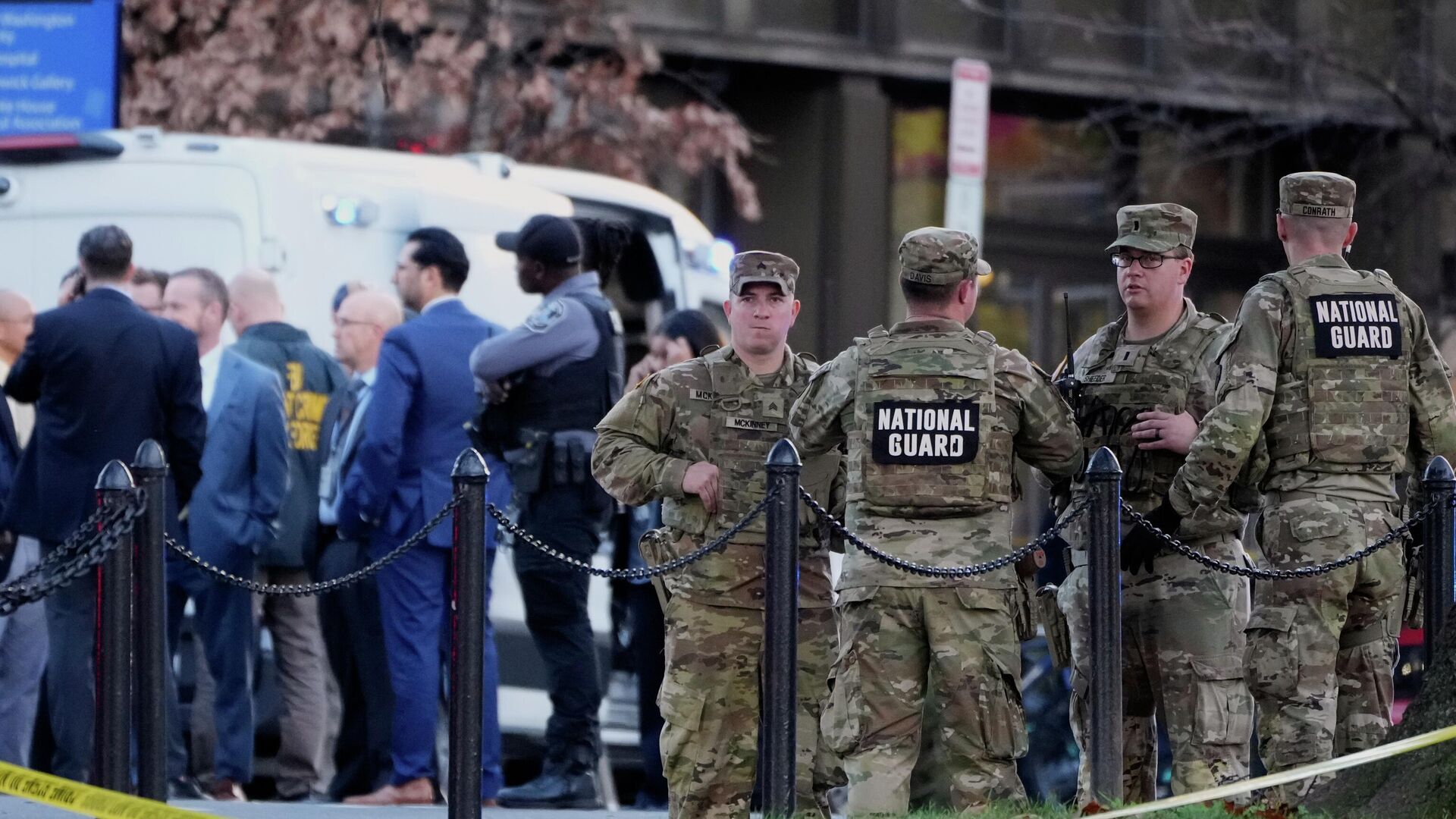 Agentes da Guarda Nacional em local onde foi realizado o ataque contra dois soldados, em Washington, nos Estados Unidos, em novembro de 2025 - Sputnik Brasil, 1920, 28.11.2025