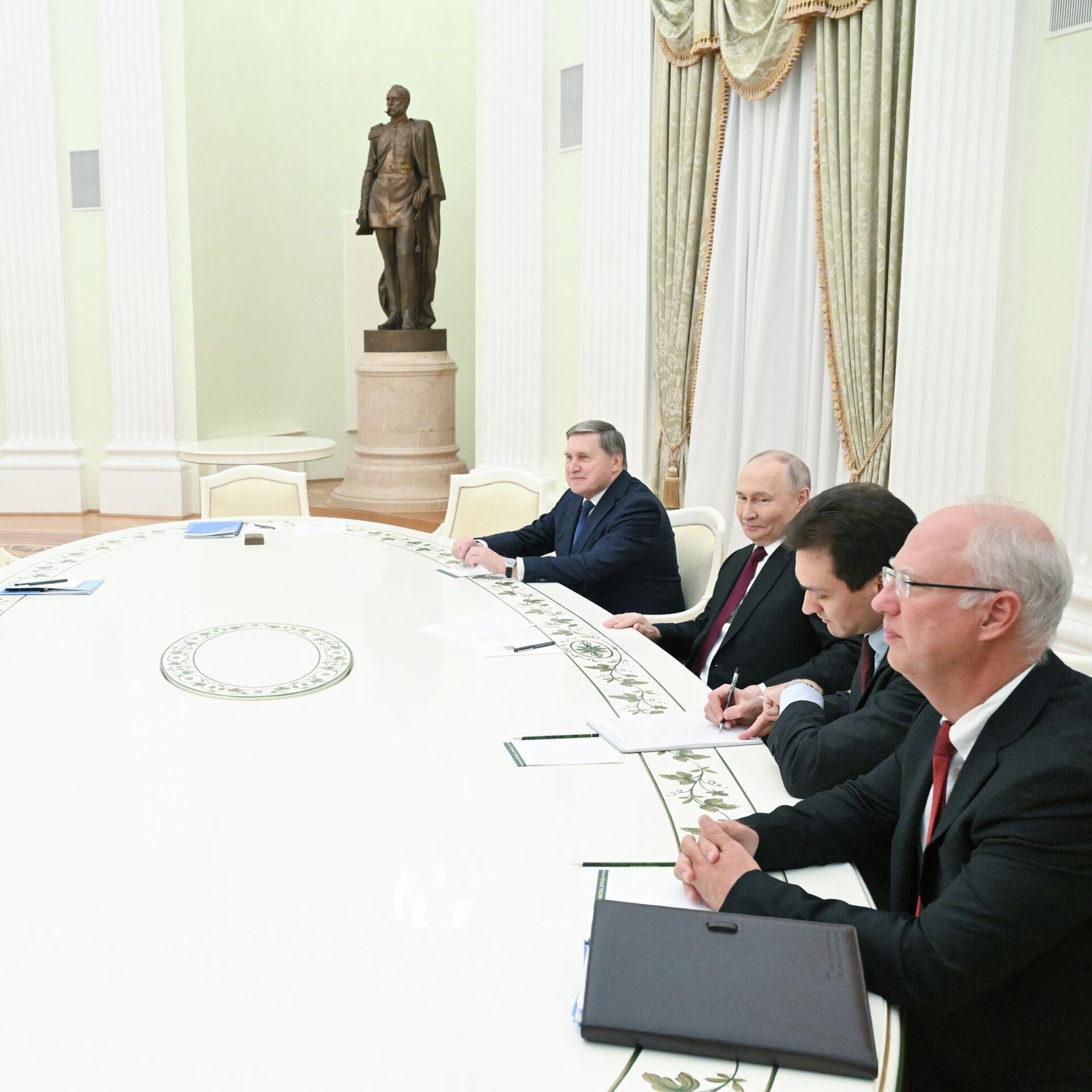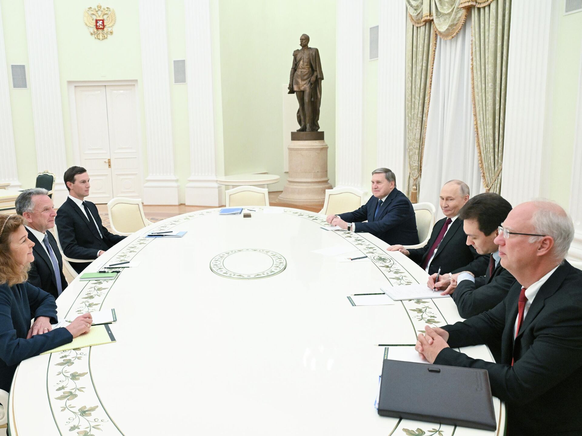 De acordo com Ushakov, as conversas foram "muito produtivas". Apesar do clima agradável, Putin disse à delegação norte-americana que a Rússia poderia concordar com algumas partes do plano dos EUA para a Ucrânia, mas que outras partes geraram críticas. Ele afirmou que os dois lados declararam estar prontos para continuar trabalhando juntos para alcançar um acordo.