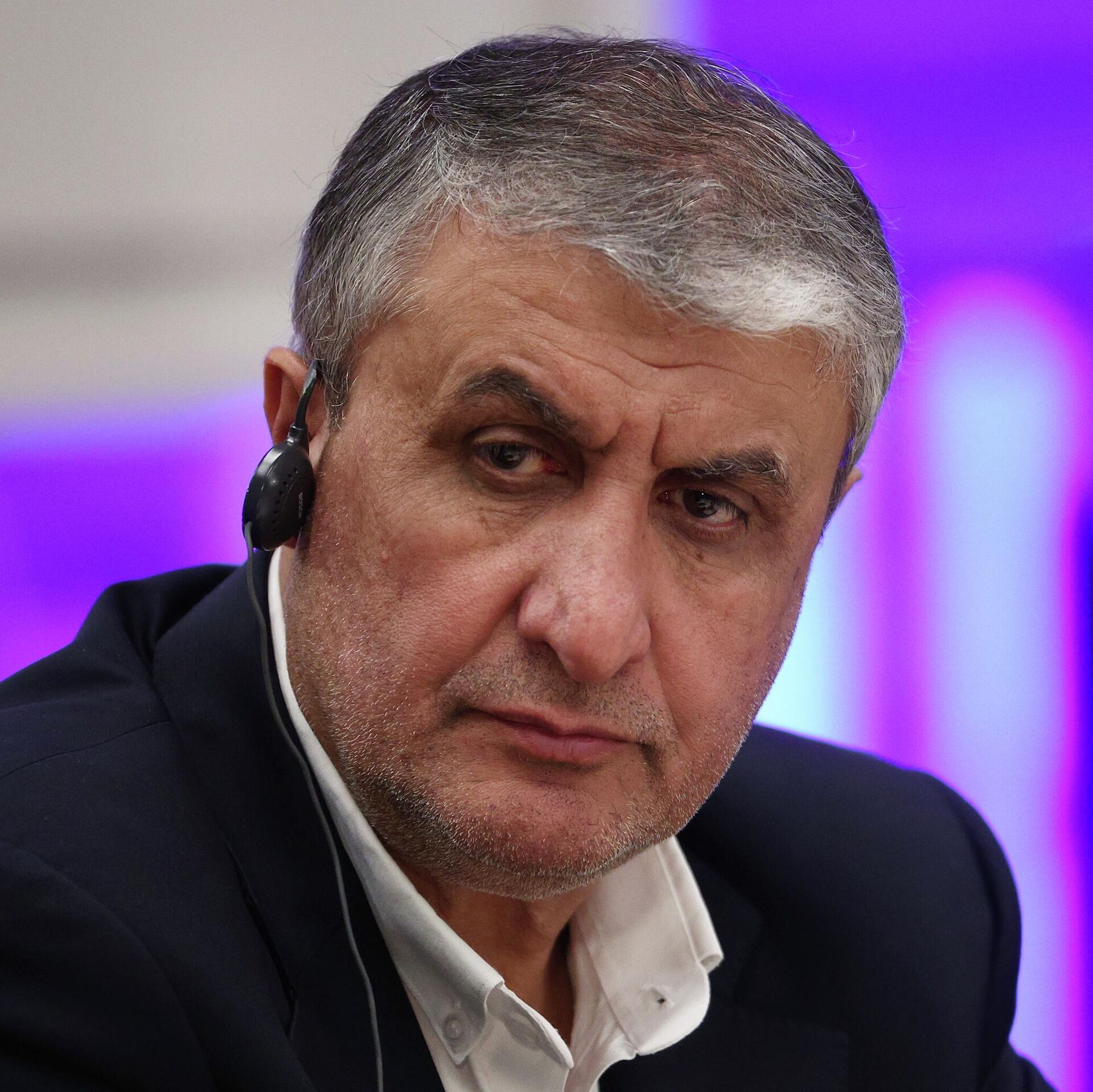 © POOL / Acessar o banco de imagensO presidente da Organização de Energia Atômica do Irã, Mohammad Eslami, durante evento sobre energia atômica na Rússia