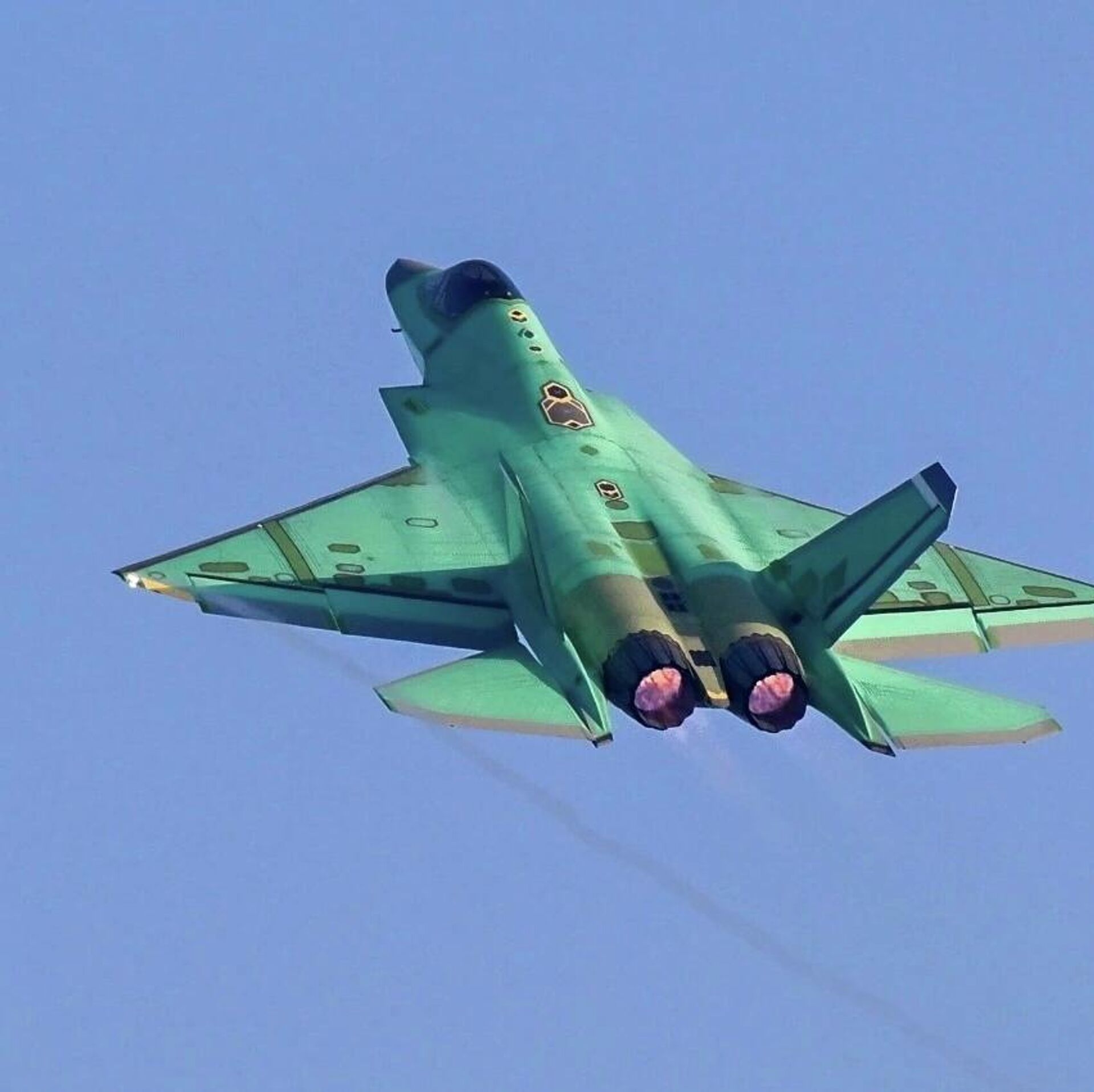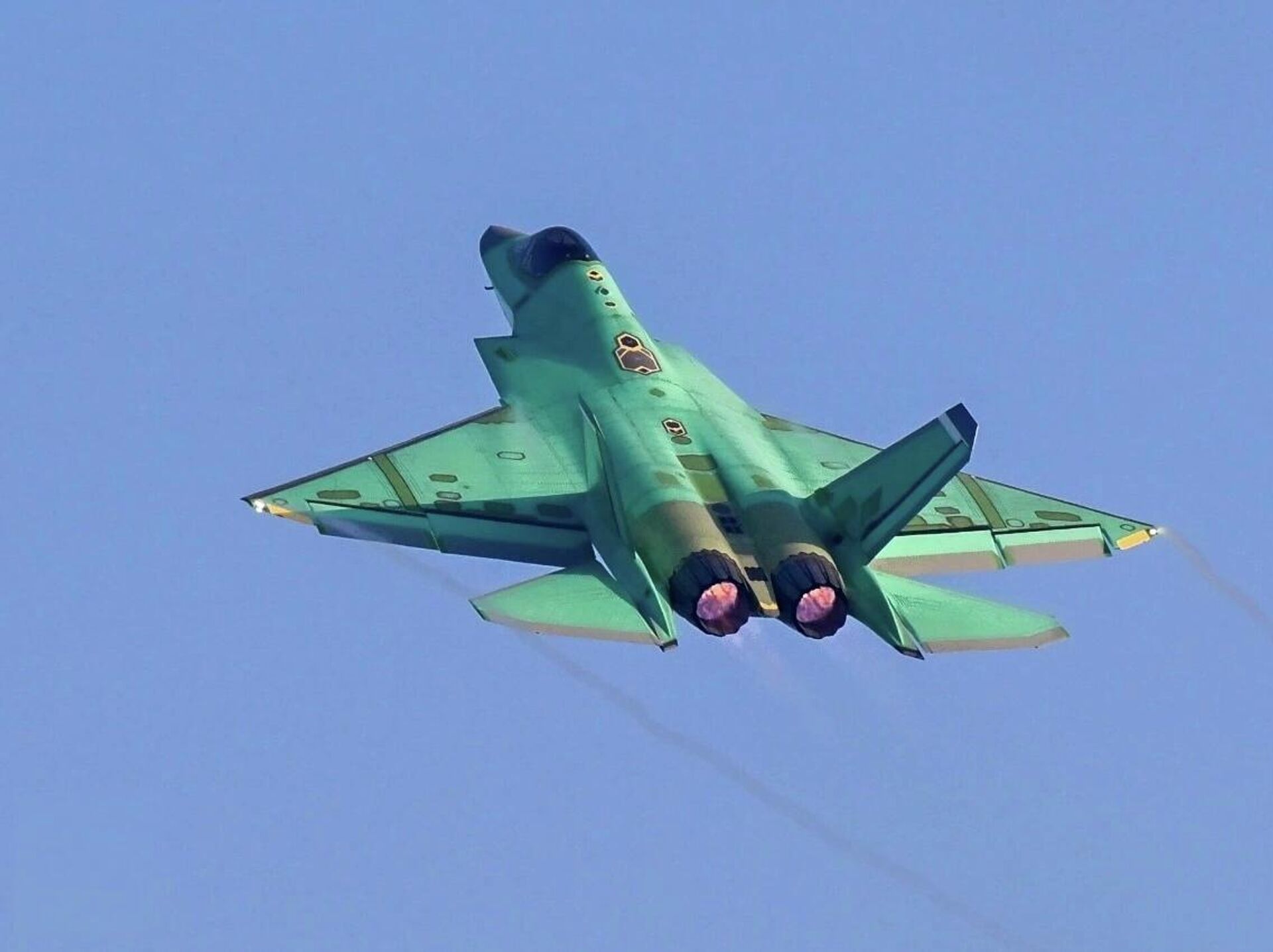 As imagens divulgadas mostram a aeronave sem revestimento tático, indicando que se trata de uma unidade recém-fabricada em fase de testes de fábrica ou testes operacionais pré-entrega.