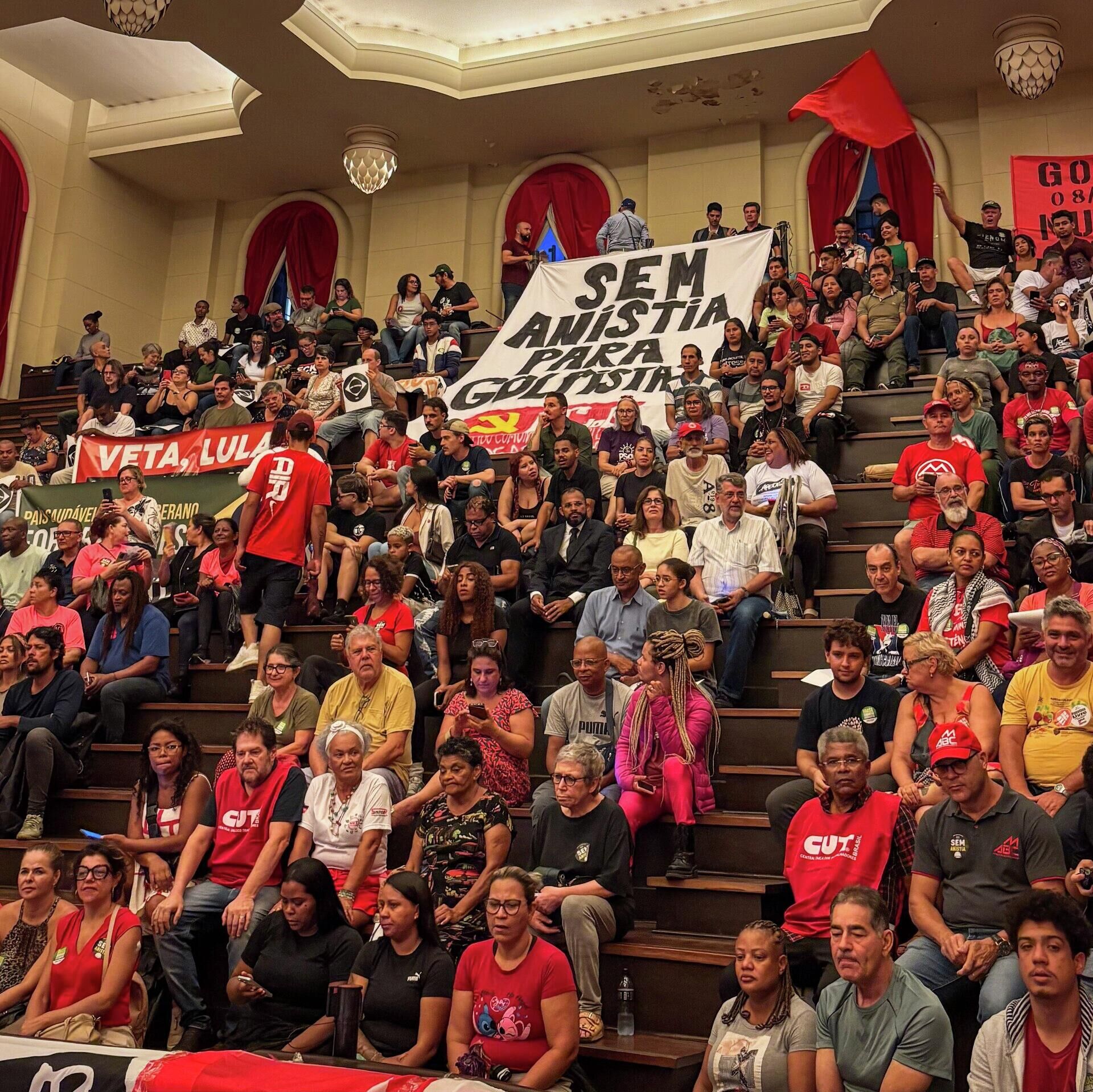 "sem anistia" foram repetidas por todo o público, que também entoou críticas ao presidente dos Estados Unidos, Donald Trump. "Se cuida imperialista, a América Latina vai ser toda socialista", cantavam.