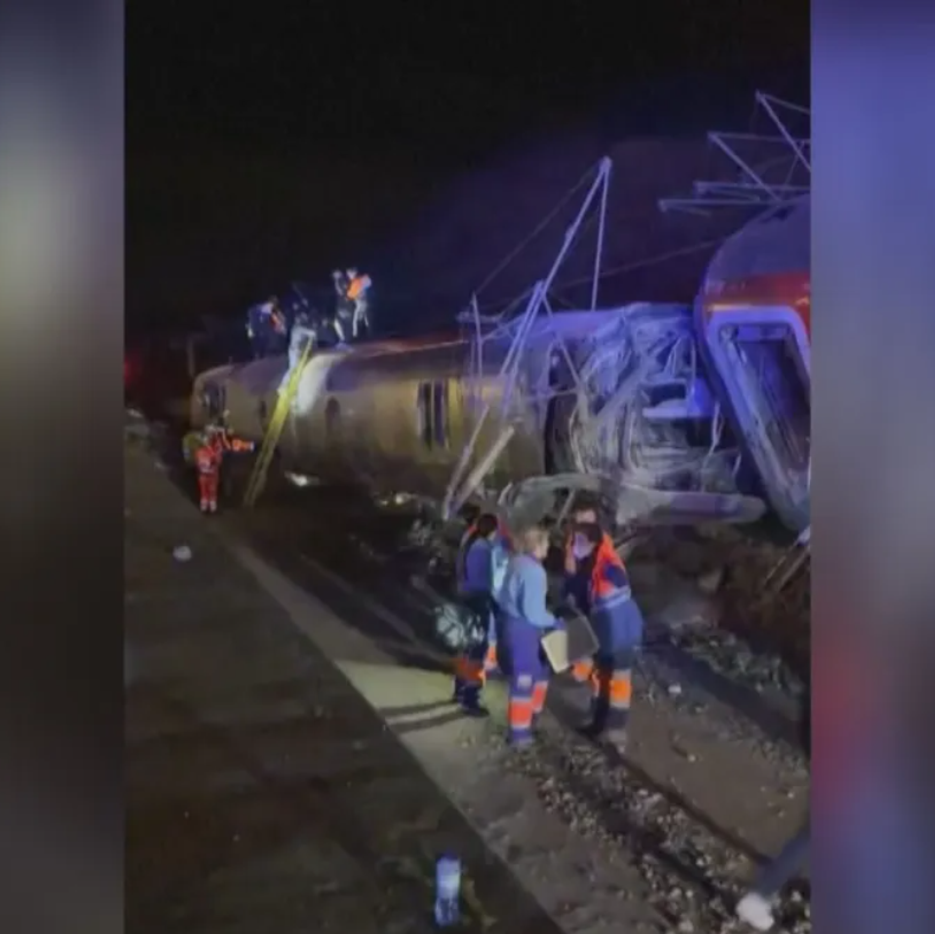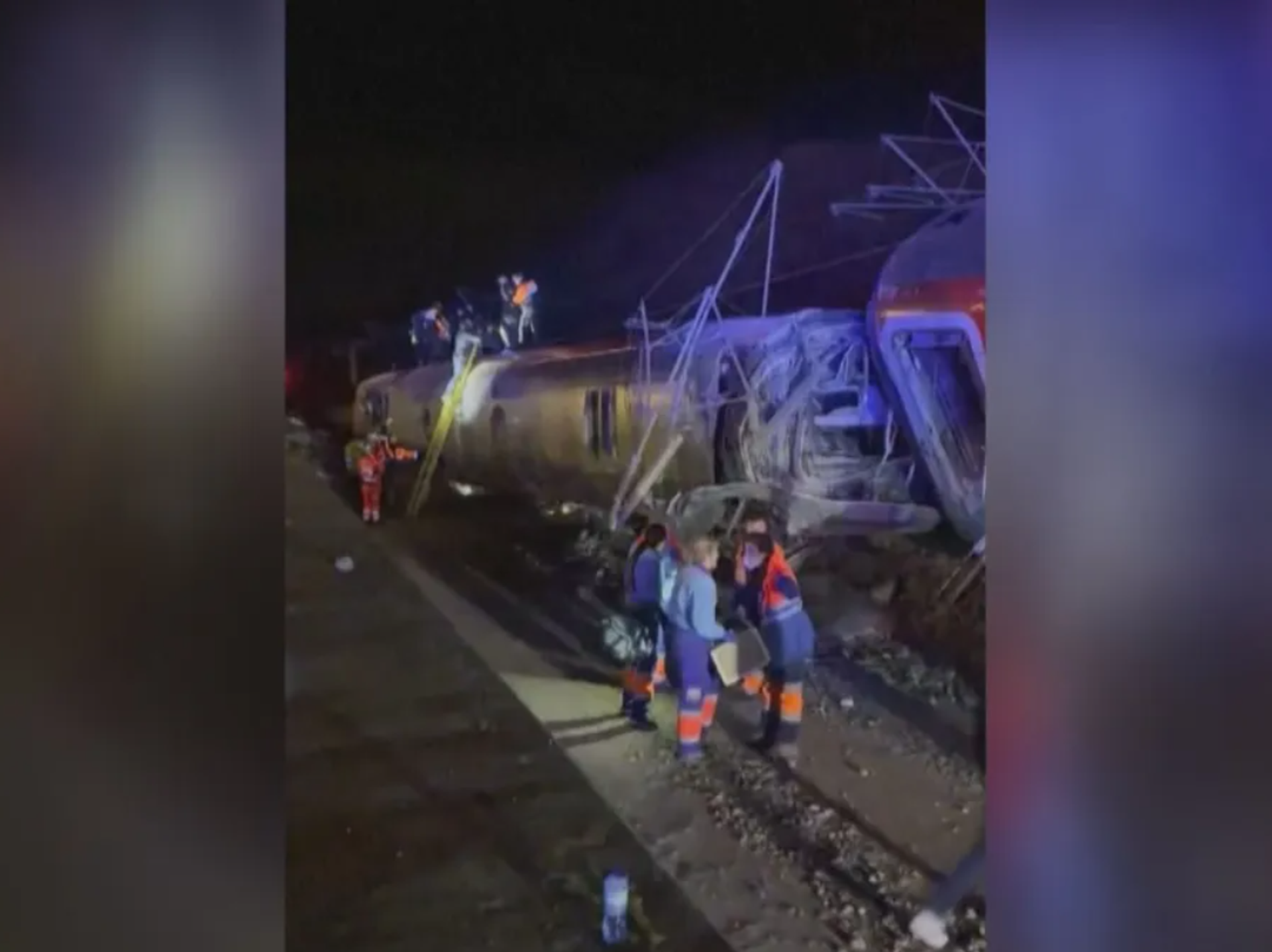 "O trem Iryo 6189 Málaga - (para Madri) descarrilou dos trilhos em Adamuz, colidindo com os trilhos adjacentes. O trem para Huelva, que viajava nos trilhos adjacentes, também descarrilou."