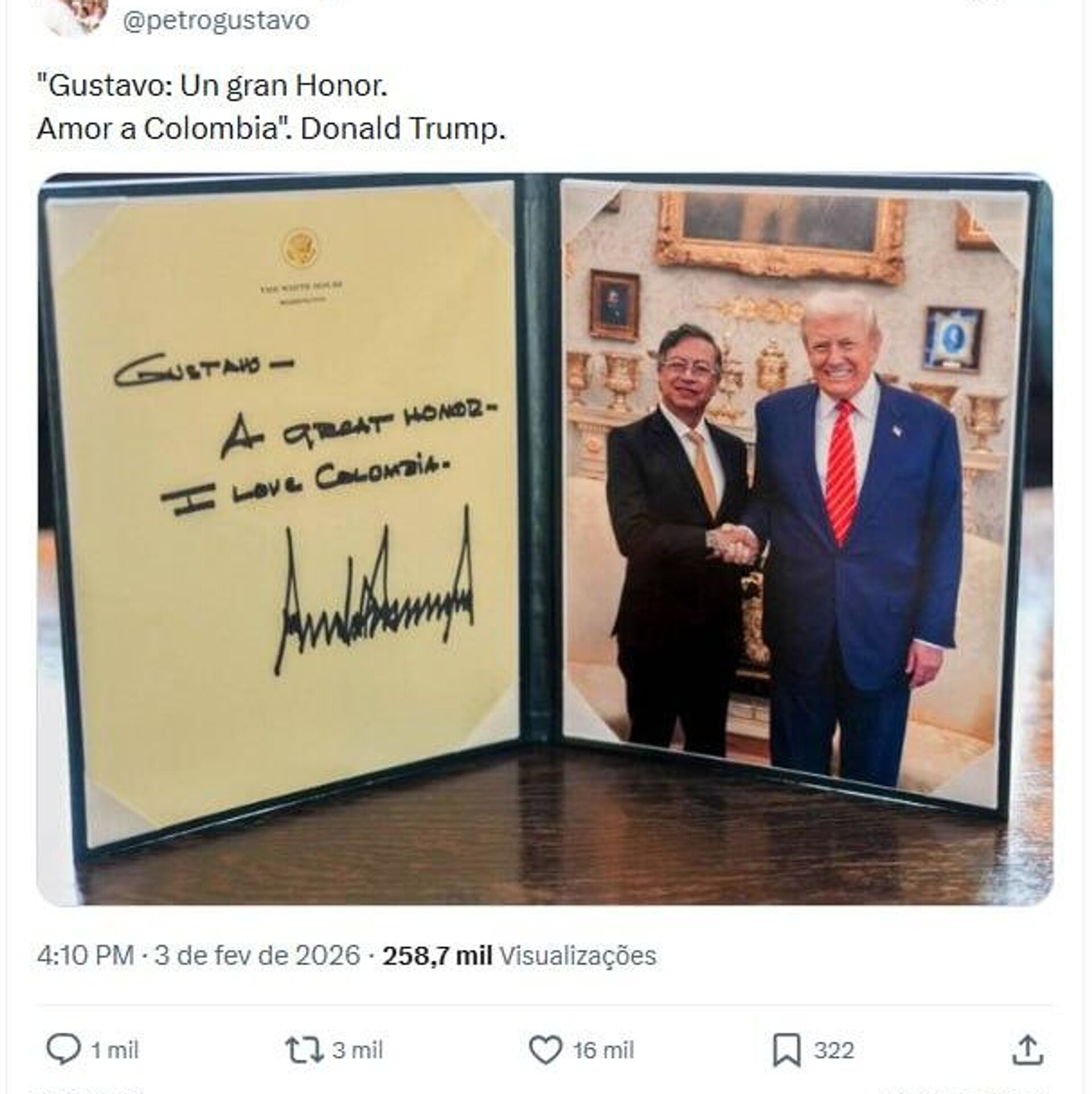 19:56 03.02.2026 (atualizado: 20:32 03.02.2026) O presidente colombiano, Gustavo Petro, declarou, nesta terça-feira (3), que a luta conjunta contra o narcotráfico com os EUA deve se concentrar em "perseguir" o capital que os chefes das organizações ilegais mantêm fora do país.