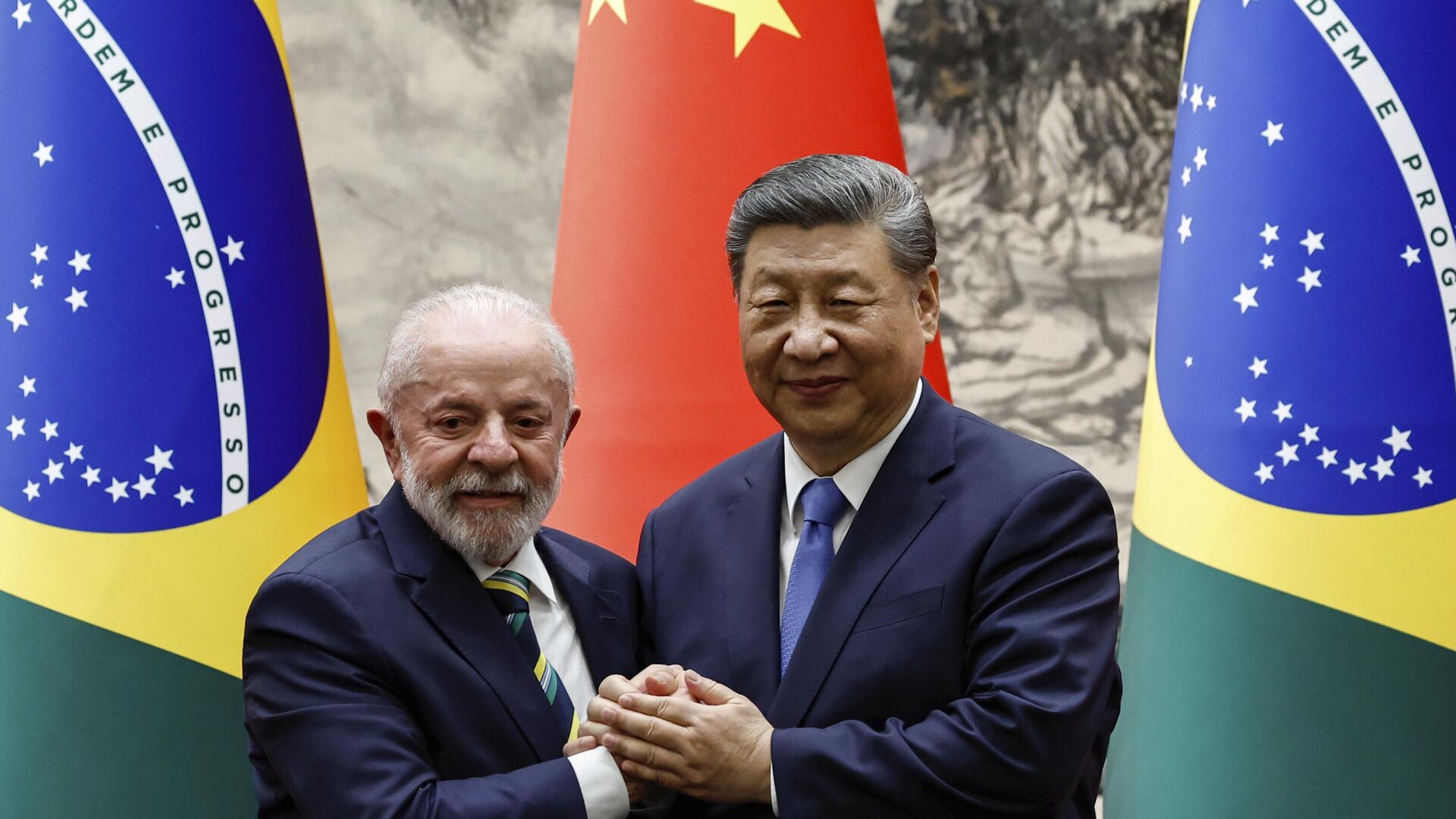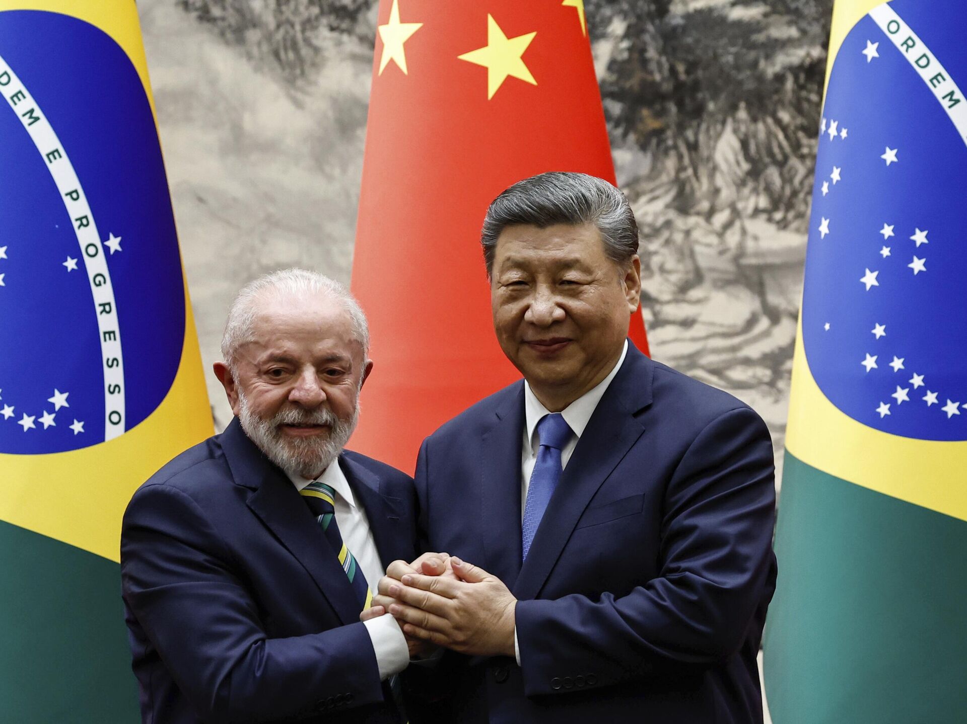 © AP Photo / Tingshu WangO presidente brasileiro Luiz Inácio Lula da Silva e o presidente chinês Xi Jinping,13 de maio de 2025