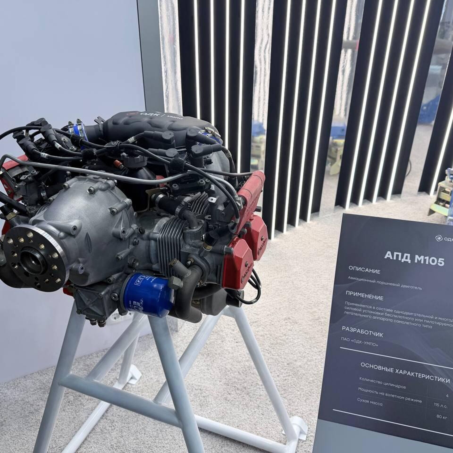 O motor entrega 115 cavalos de potência, pesa 75 kg e tem cilindrada de 1.211 cm³, combinando dimensões compactas e alto desempenho. A versão M105V, adaptada para pequenos helicópteros e autogiros, pode também acionar geradores elétricos e propulsores de empuxo frontal ou traseiro.Com características técnicas competitivas, o novo motor está pronto para substituir modelos importados no mercado russo.