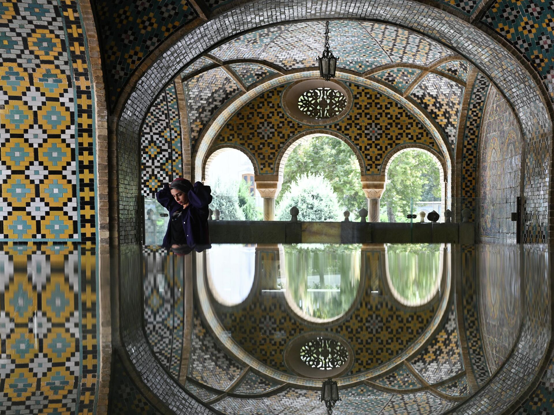Um dos espaços mais famosos do complexo é o Salão dos Espelhos, utilizado para recepções oficiais e cerimônias reais. Nesse ambiente, milhares de pequenos fragmentos de espelho formam desenhos geométricos nas paredes e no teto, refletindo a luz e ampliando visualmente o espaço. Essa técnica persa, ayeneh-kari, cria jogos de luz quando iluminados por janelas ou lustres.