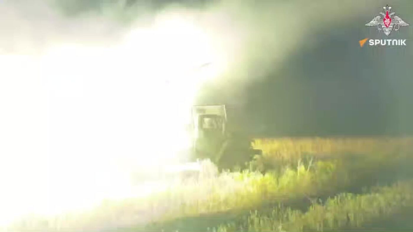 Lançador de foguetes russo Grad realiza ataques devastadores contra fortificações inimigas na região de Zaporozhie