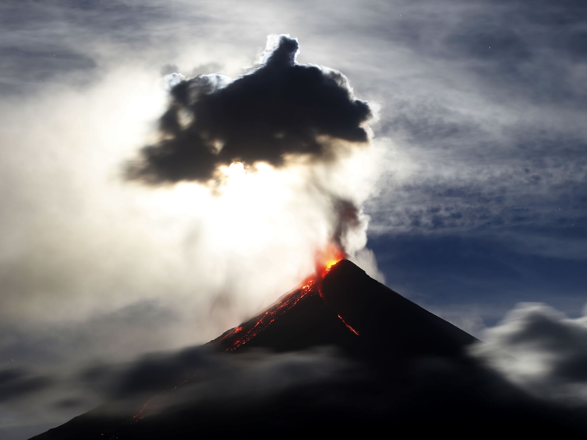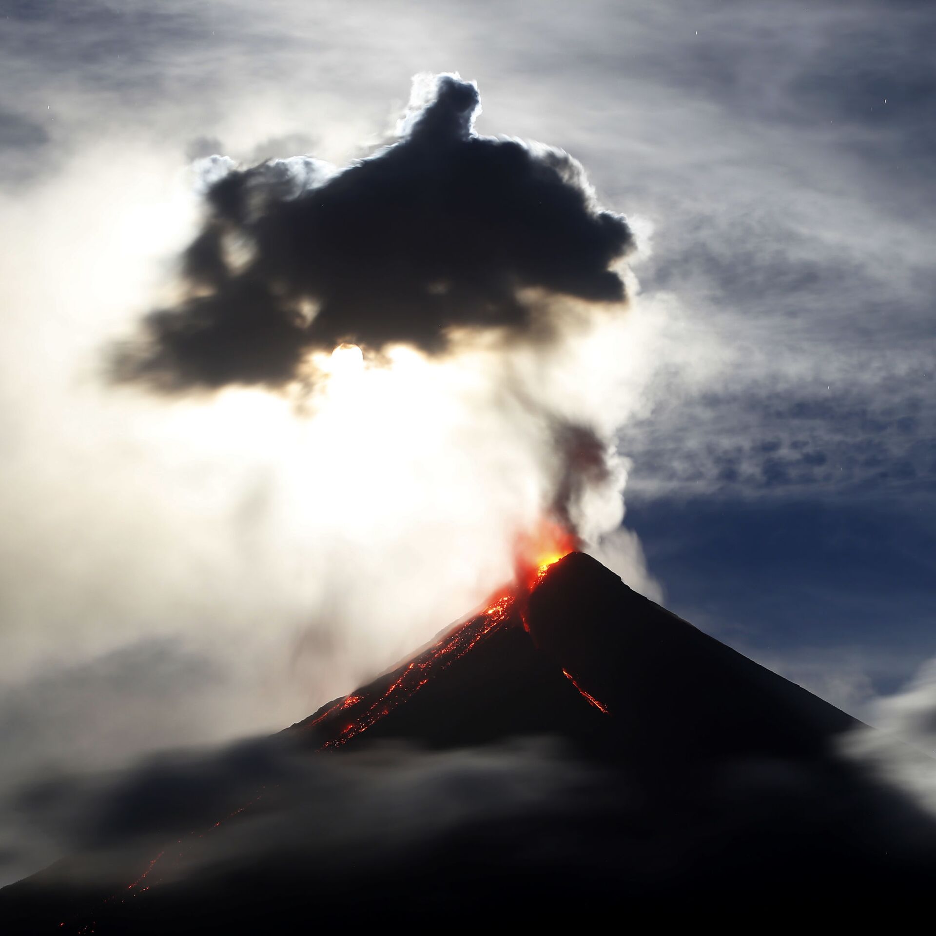 © AP Photo / Bullit MarquezSuperlua azul de sangue aparece encoberta por uma nuvem de pó expelido pelo vulcão Mayon, nas Filipinas