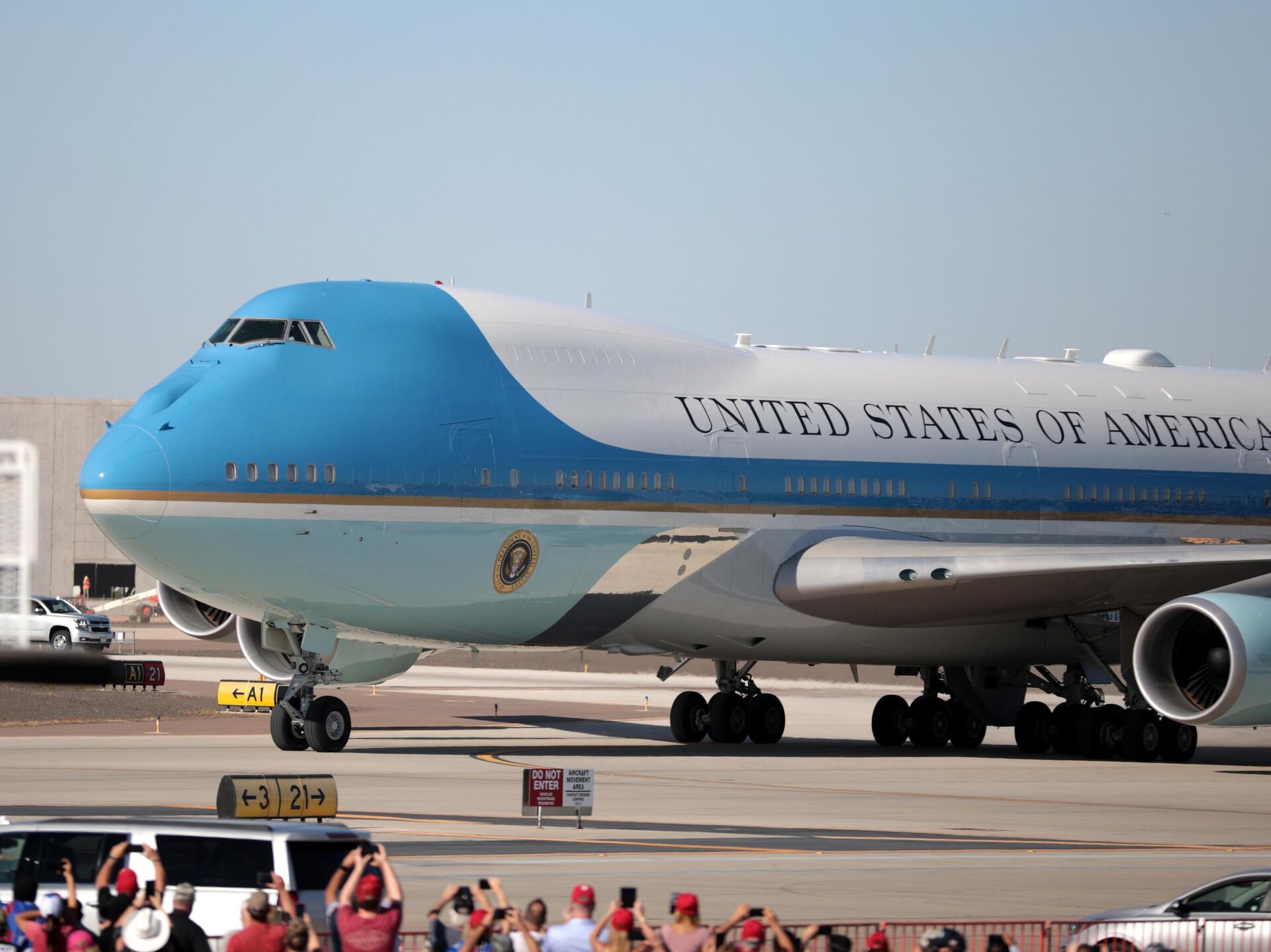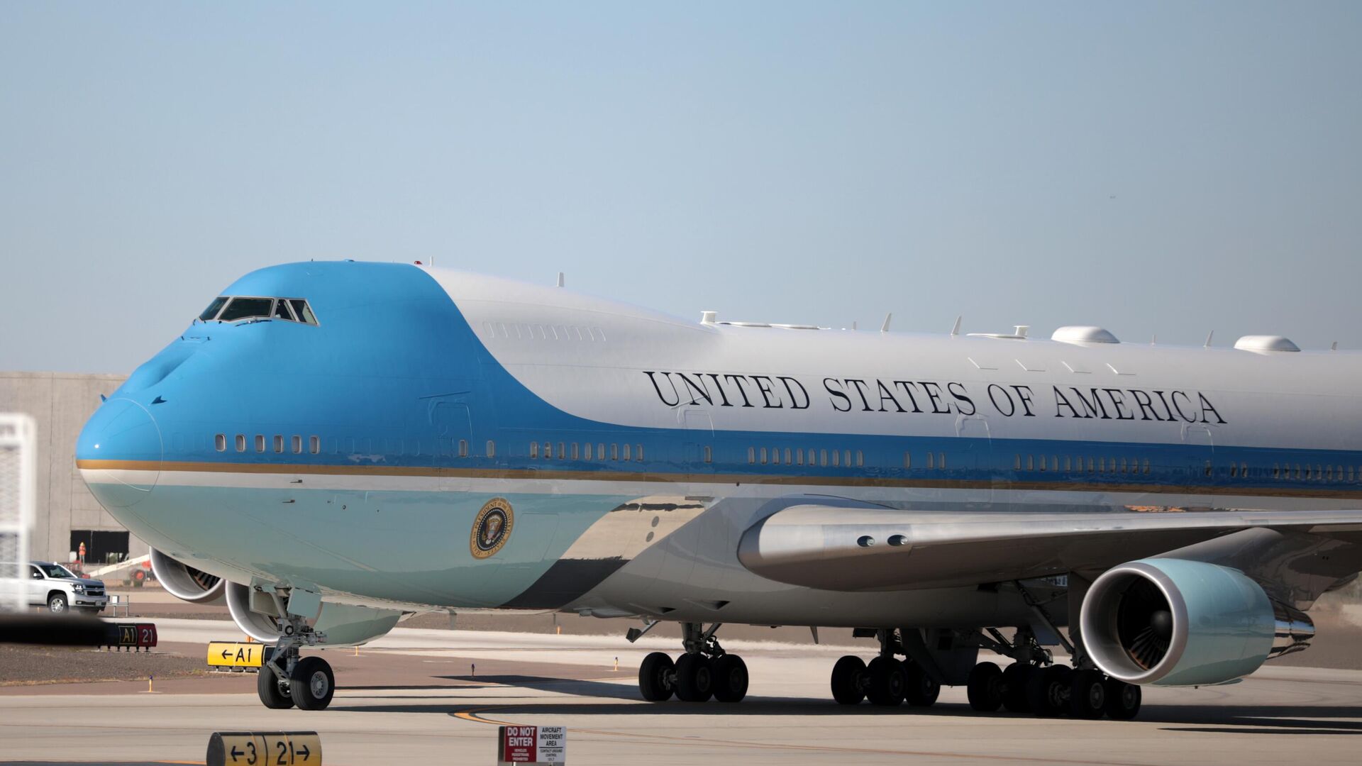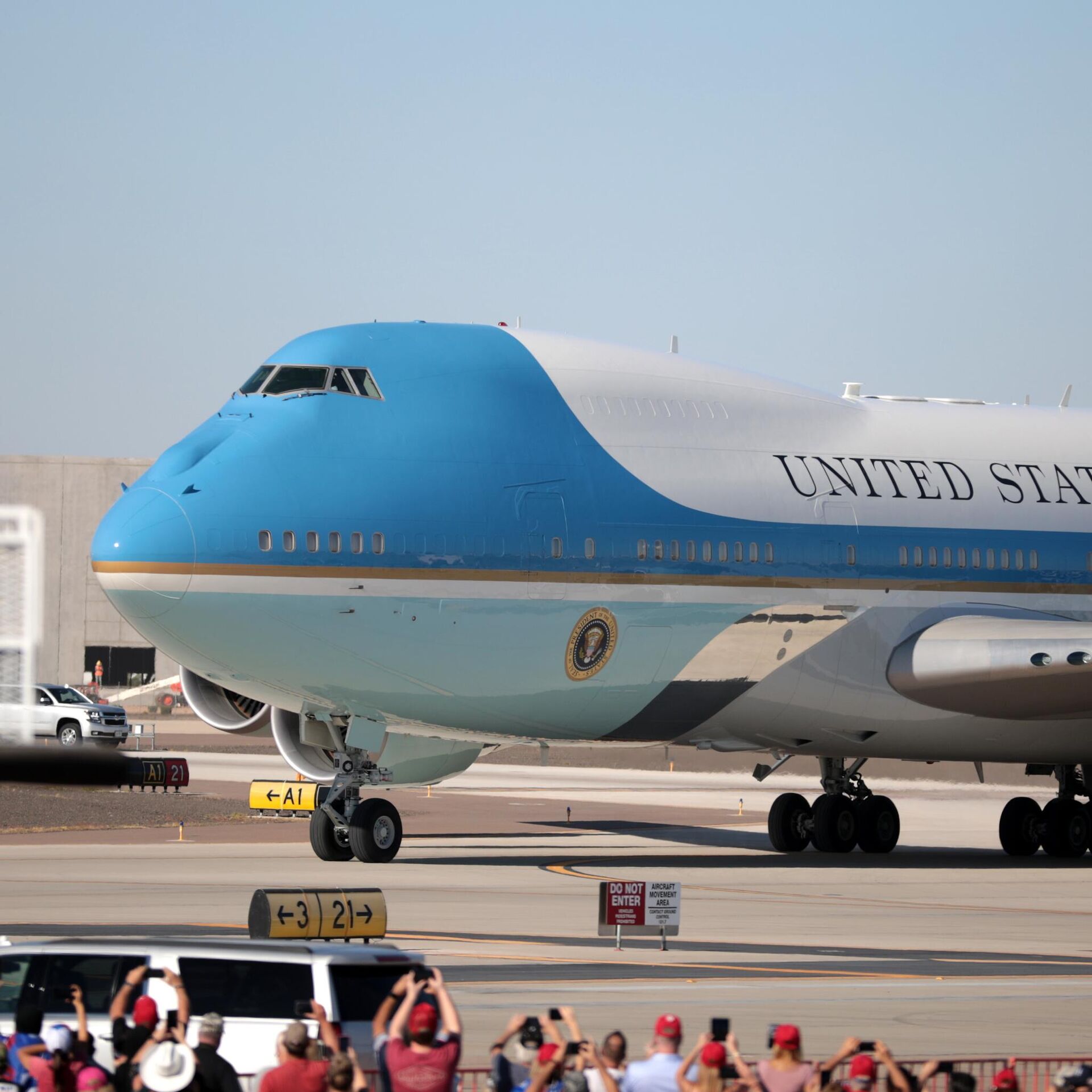 O avião presidencial estava em solo no momento da aproximação do drone e o presidente estadunidense,