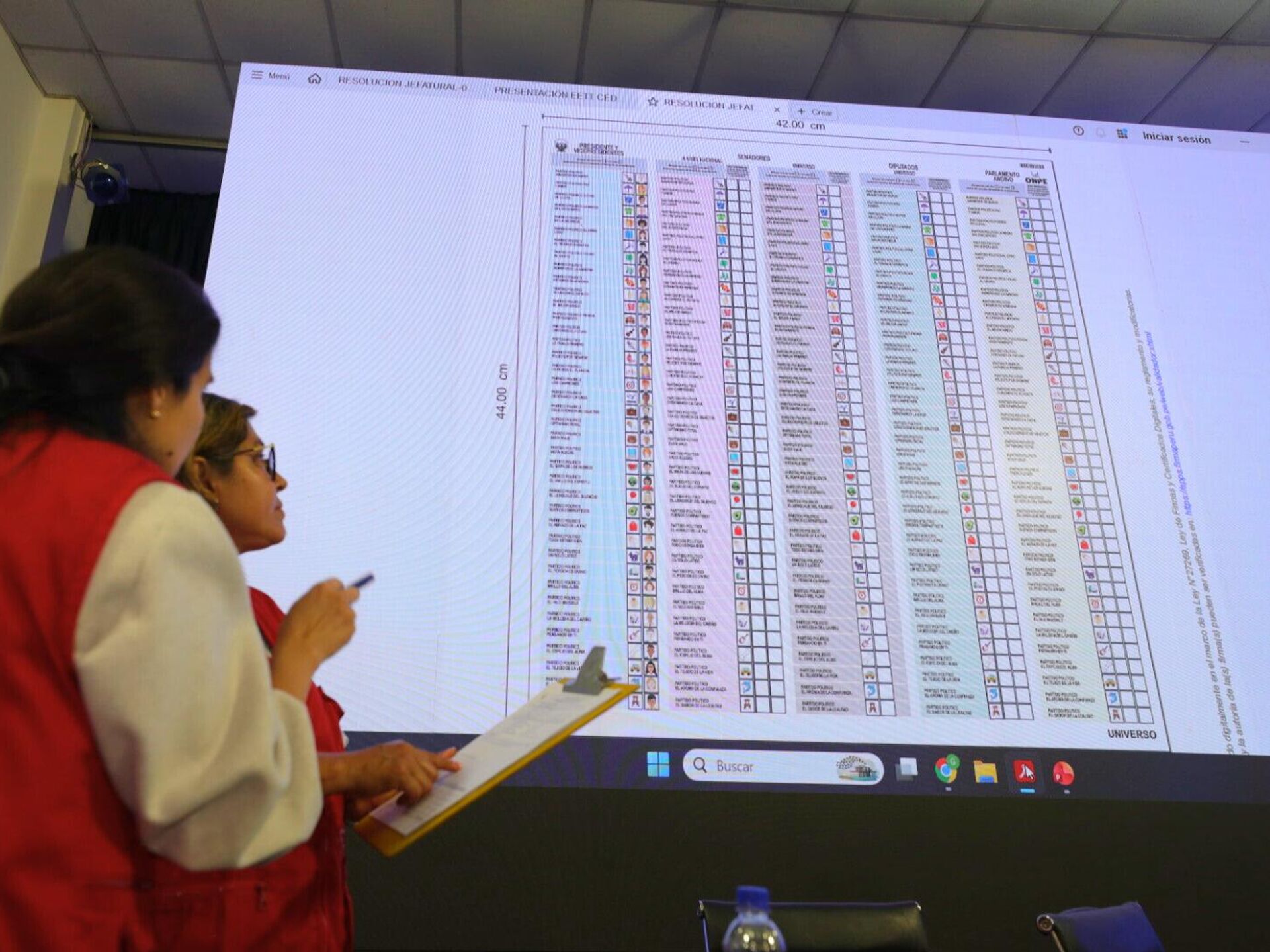 35 partidos e cinco colunas para votar em candidatos a presidente, senadores nacionais, senadores provinciais, deputados e representantes no Parlamento Andino.