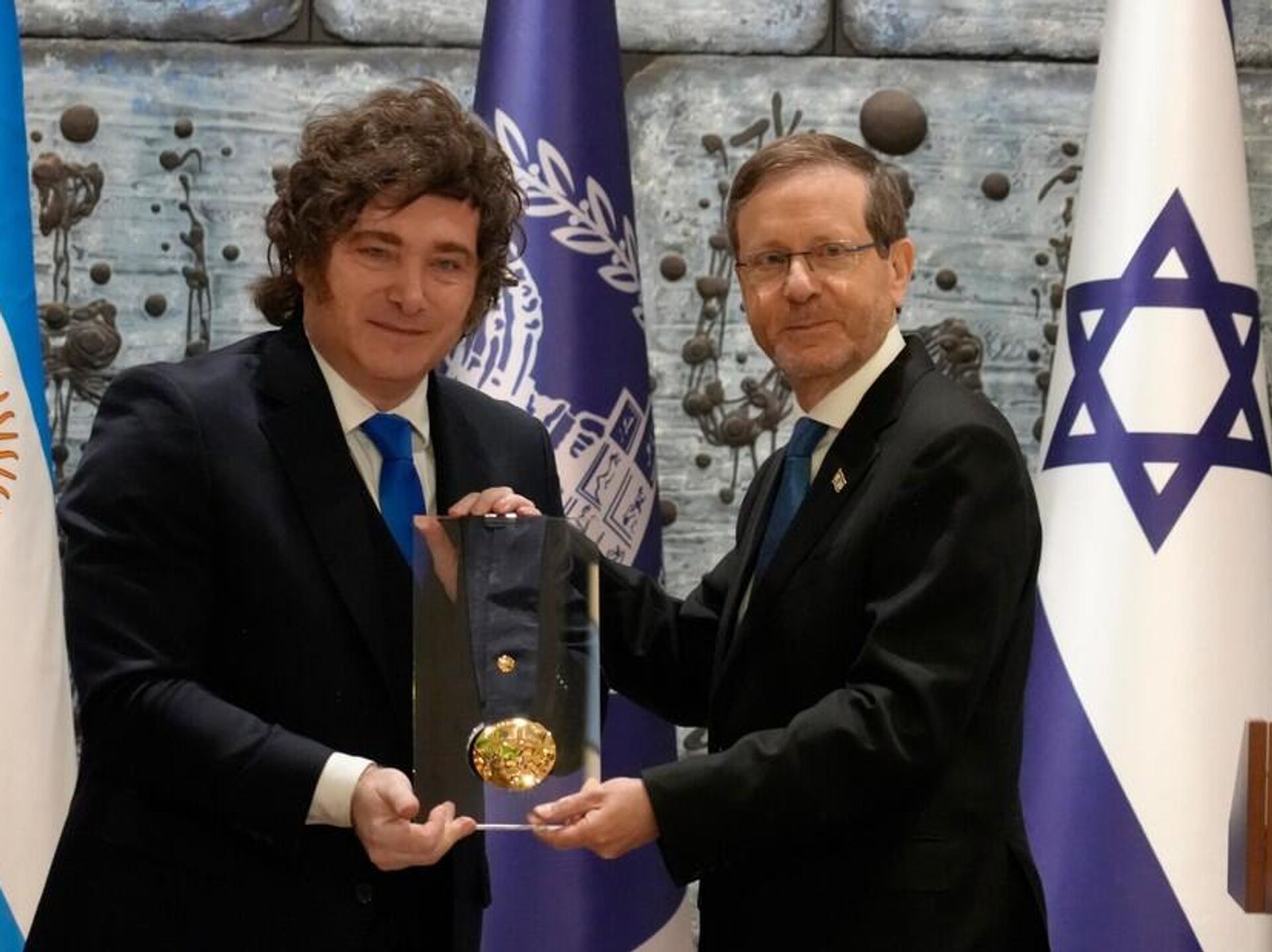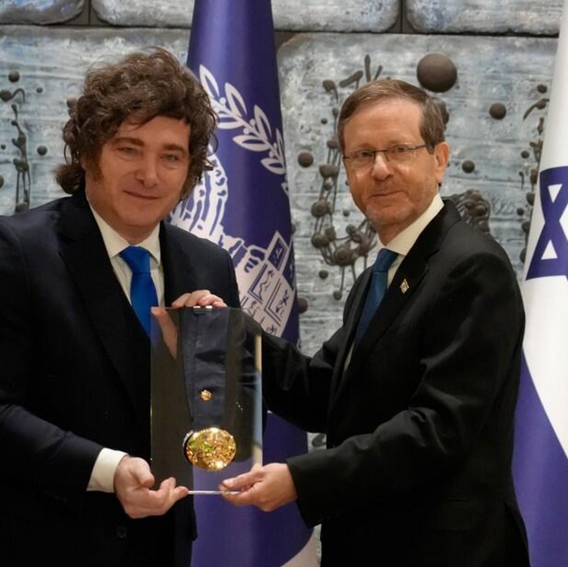 Em Jerusalém, o presidente da Argentina, Javier Milei, recebeu nesta segunda-feira (20), das mãos do presidente israelense, Isaac Herzog, a Medalha Presidencial de Honra, em reconhecimento ao apoio diplomático da Argentina a Israel.